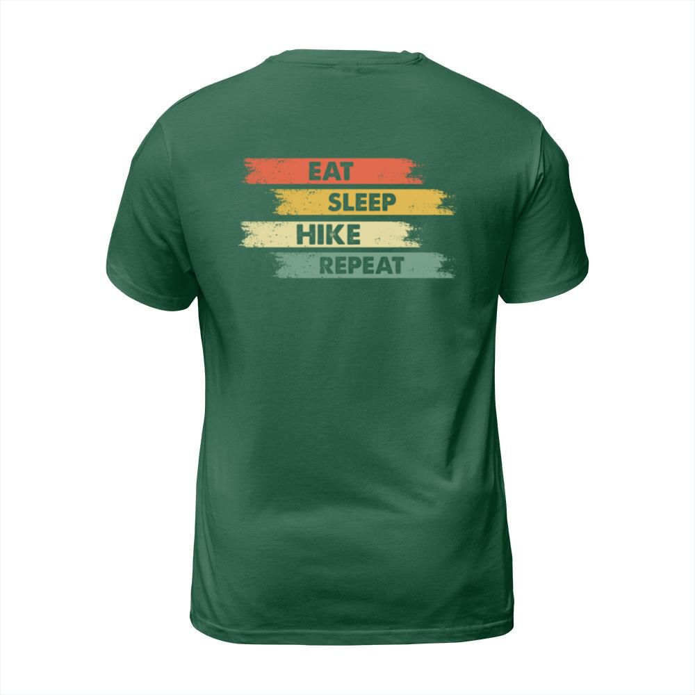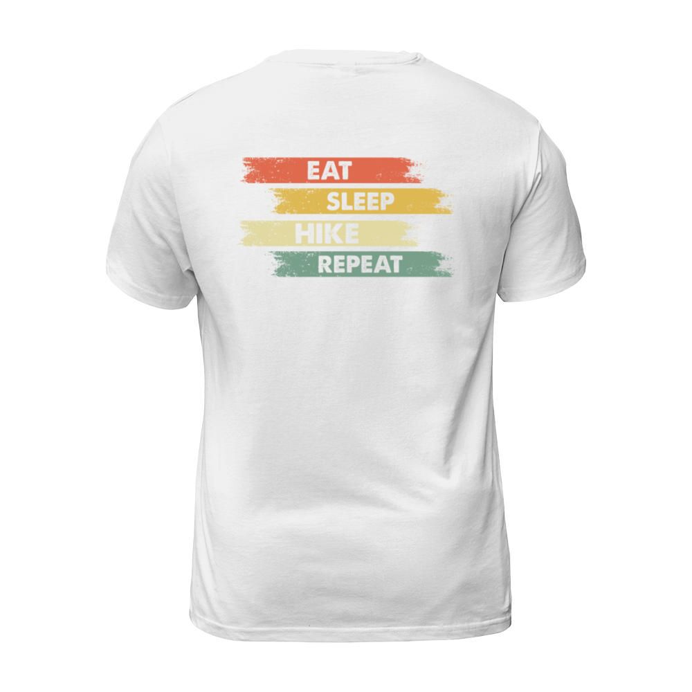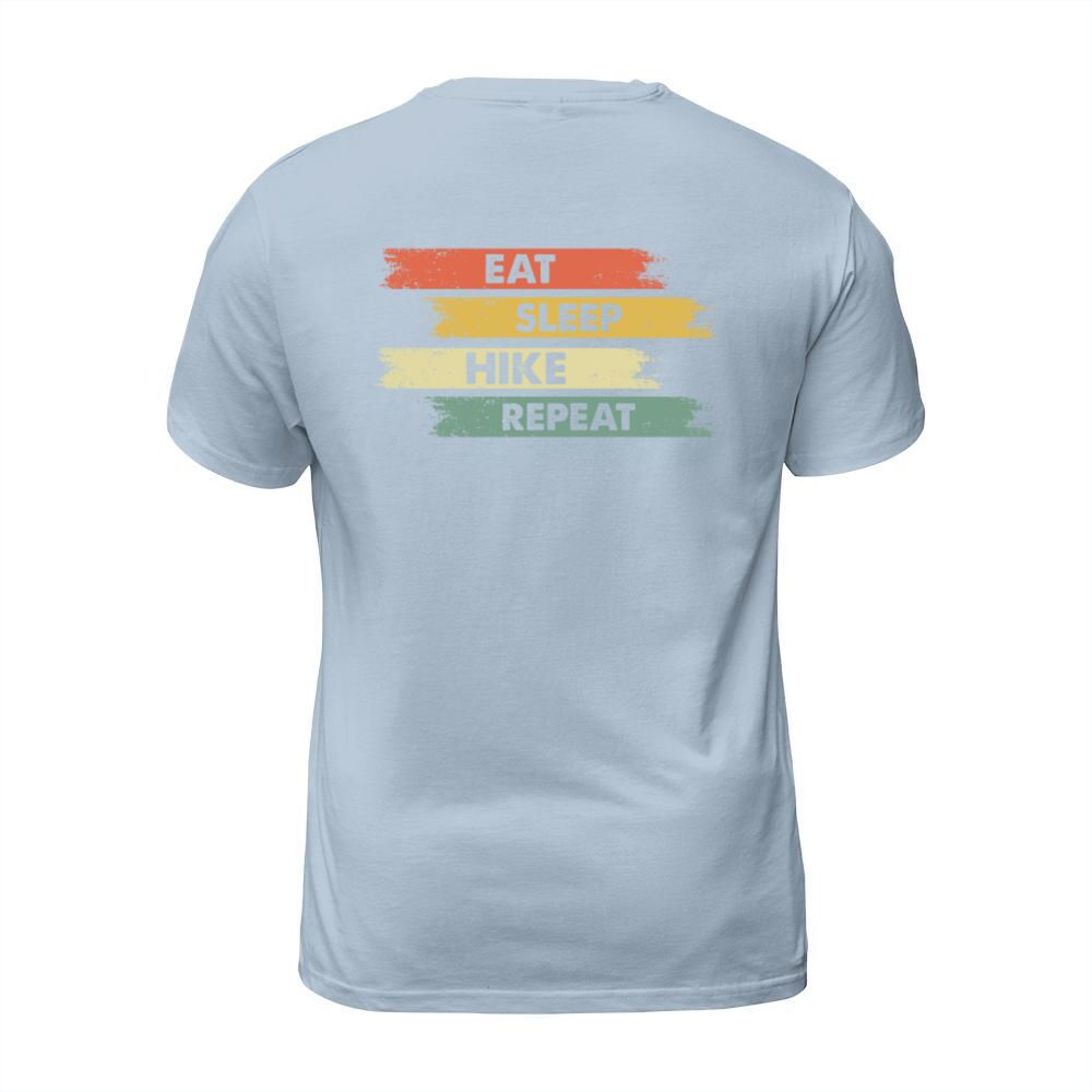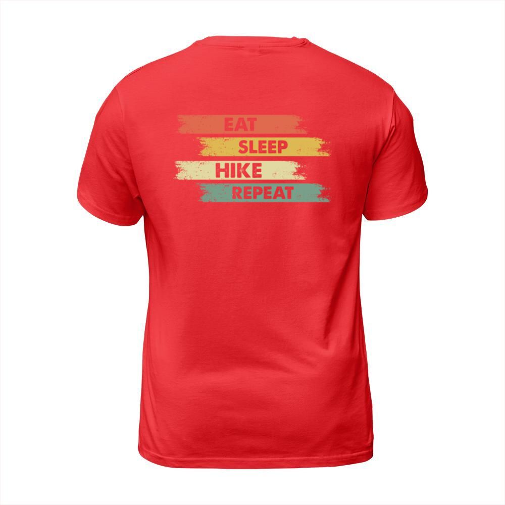 Shop Eat sleep hiking repeat quotation tshirt T-Shirt Unisex custom made just for you. Available on many styles, sizes, and colors.