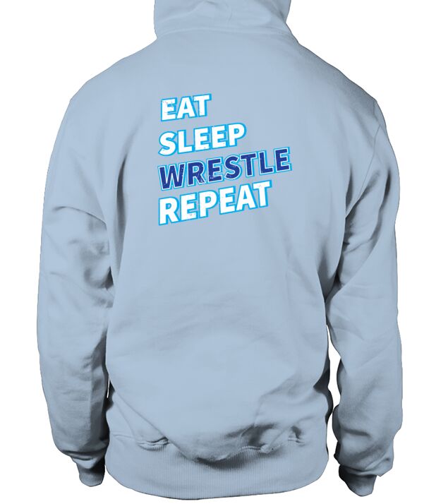 Shop Eat Sleep Wrestle Repeat Hoodie Unisex custom made just for you. Available on many styles, sizes, and colors.