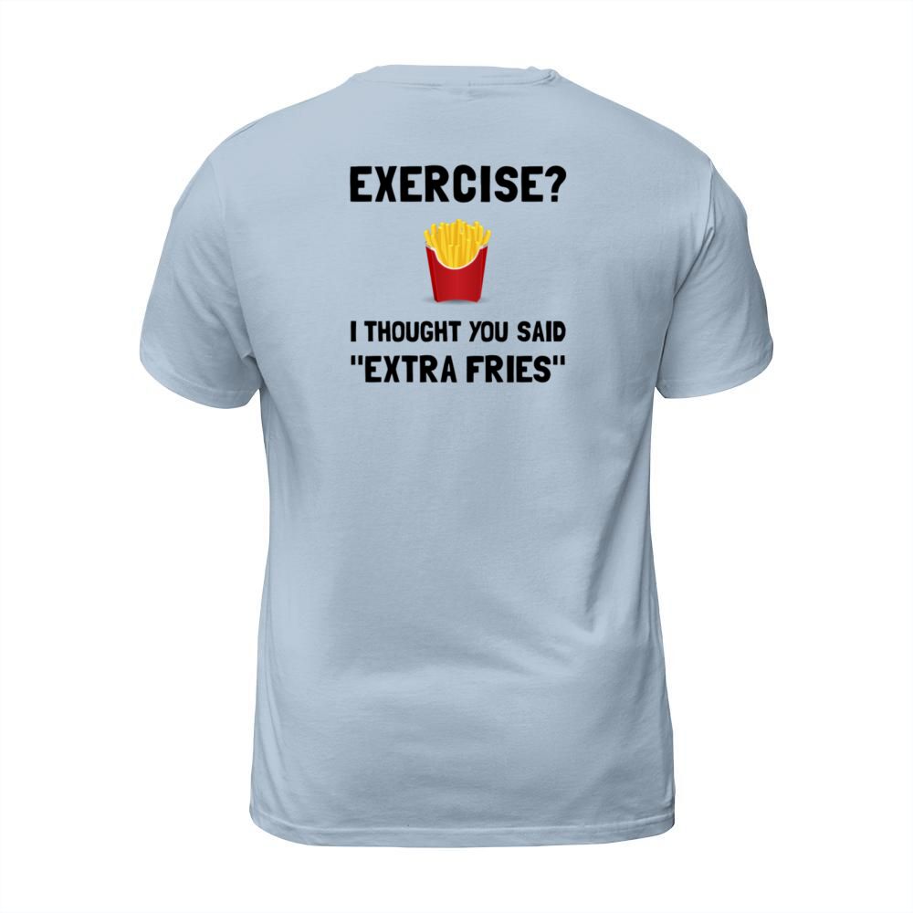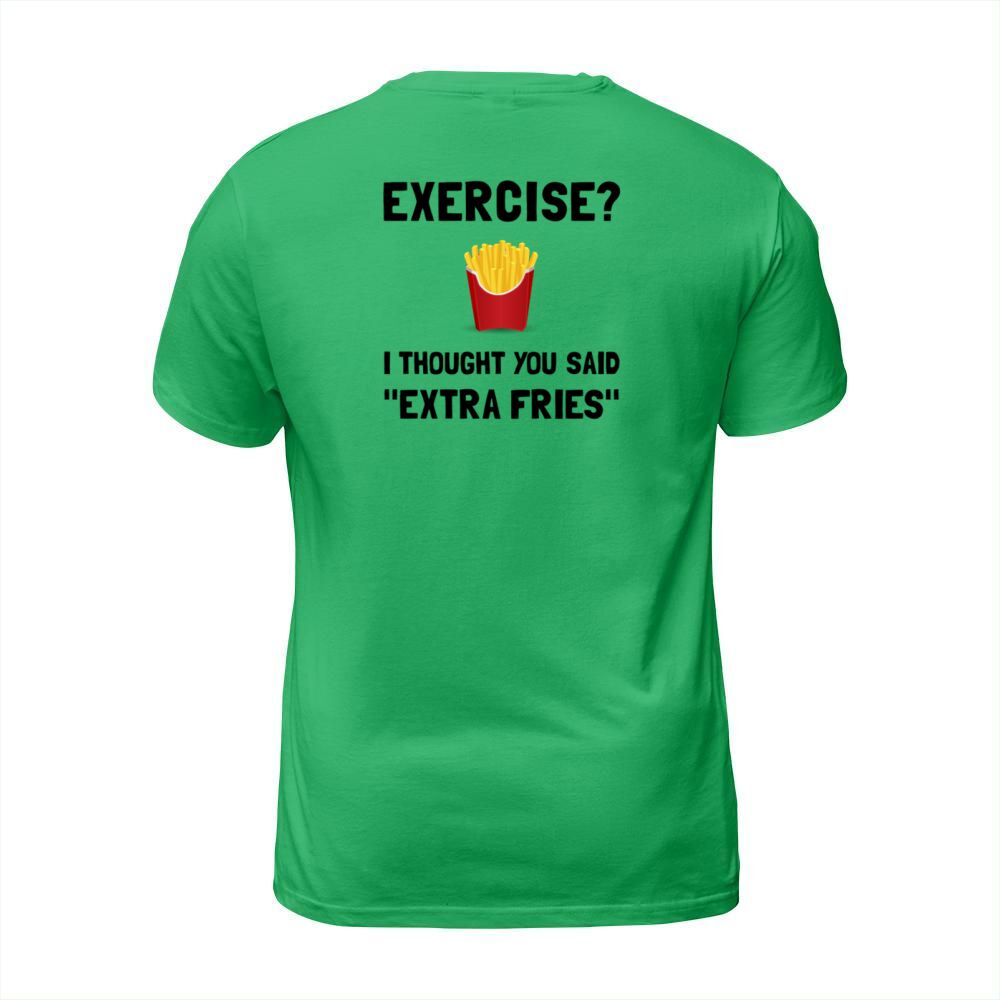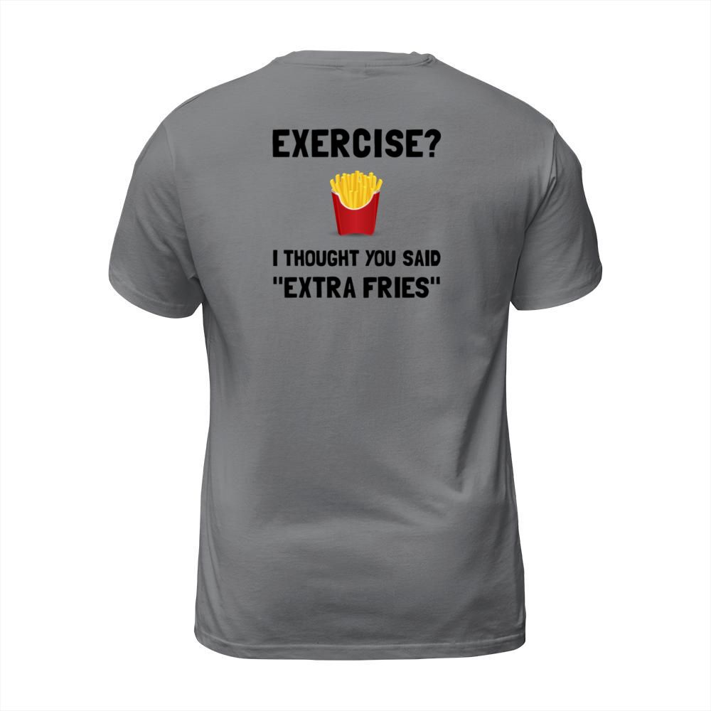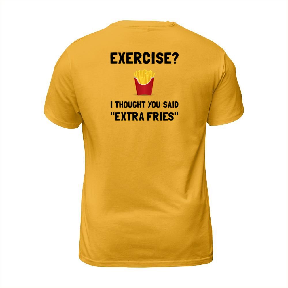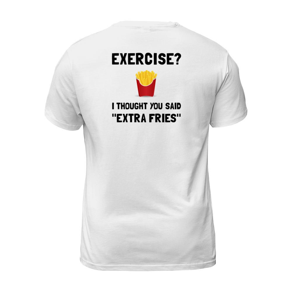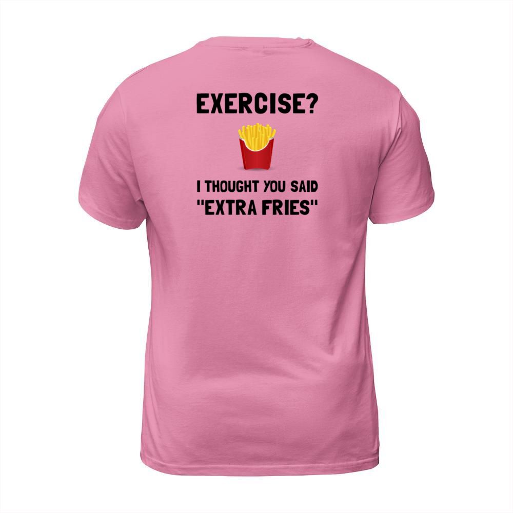 Shop Exercise i thought you said Extra Fries T-Shirt Unisex custom made just for you. Available on many styles, sizes, and colors.
