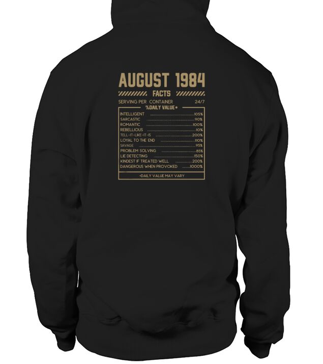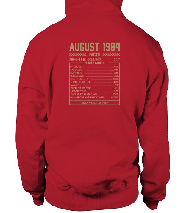 Shop Fact August 1984 Hoodie Unisex custom made just for you. Available on many styles, sizes, and colors.