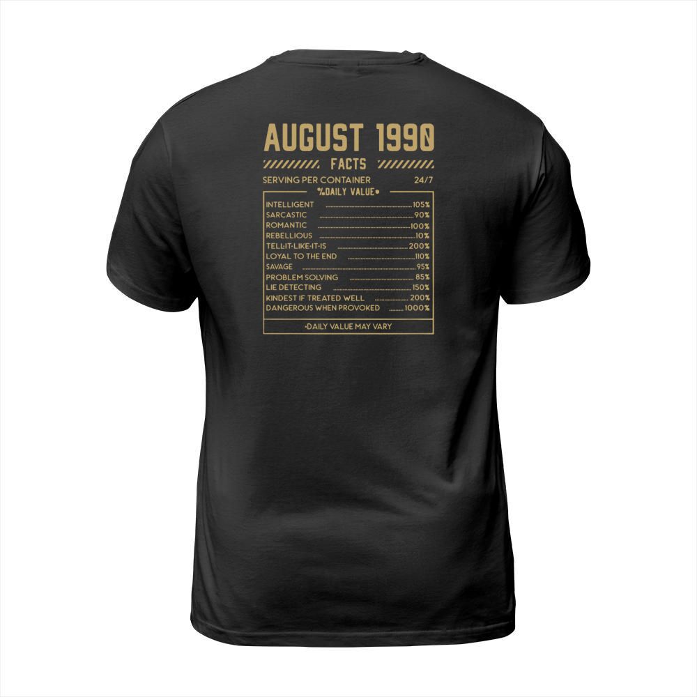 Shop Fact August 1990 T-Shirt Unisex custom made just for you. Available on many styles, sizes, and colors.