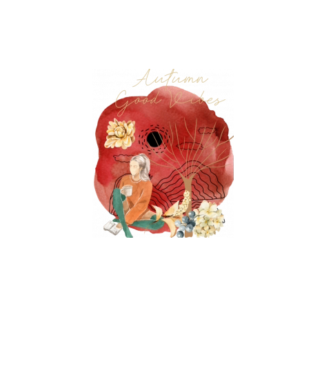 Fall Good Vibes Girl drink Cofee Red