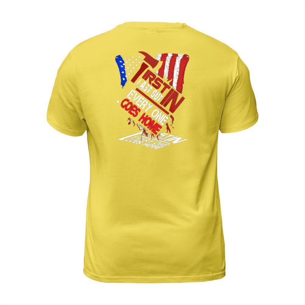 Shop Firefighter First In Last Out T-Shirt Unisex custom made just for you. Available on many styles, sizes, and colors.