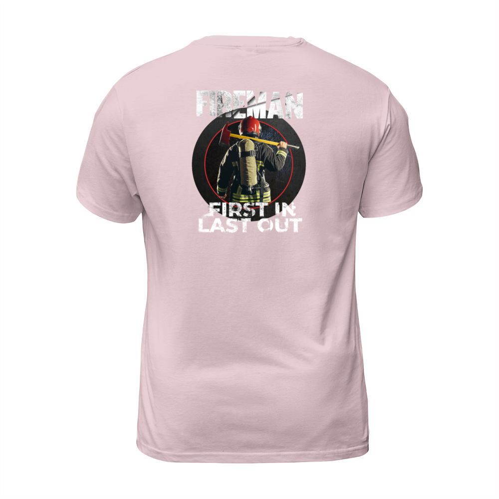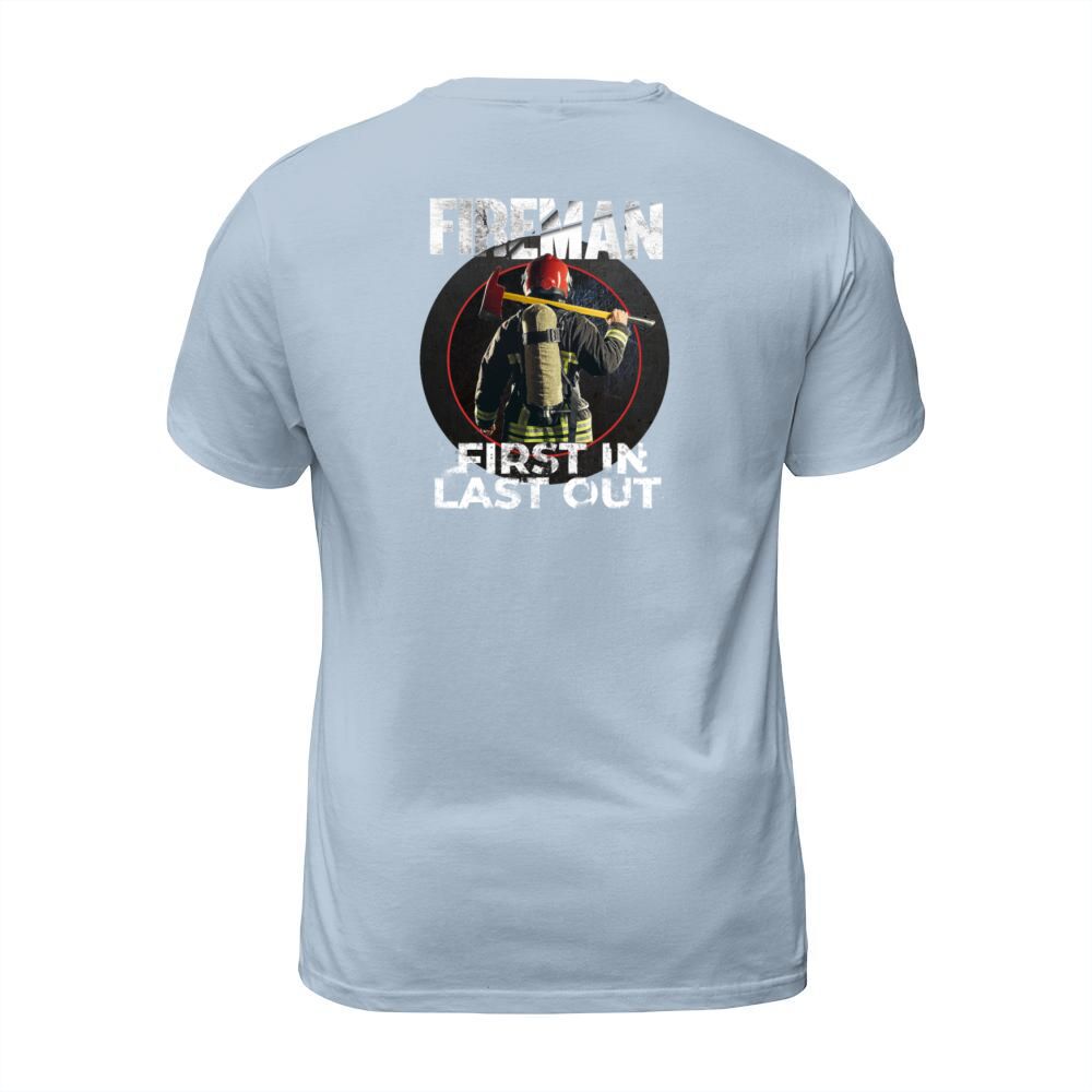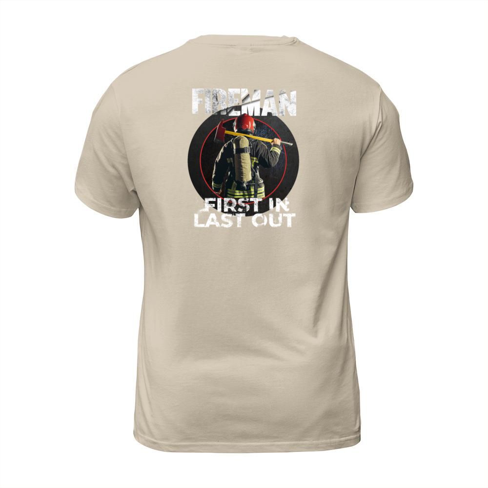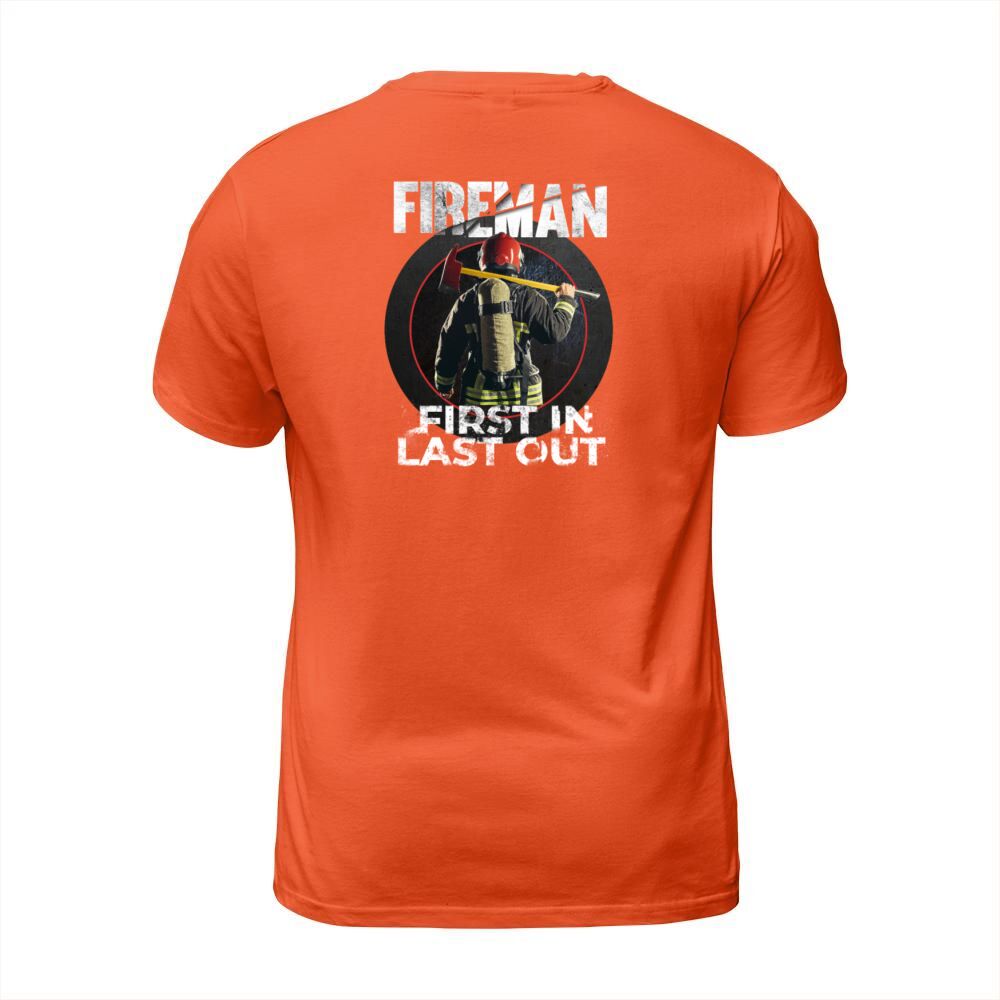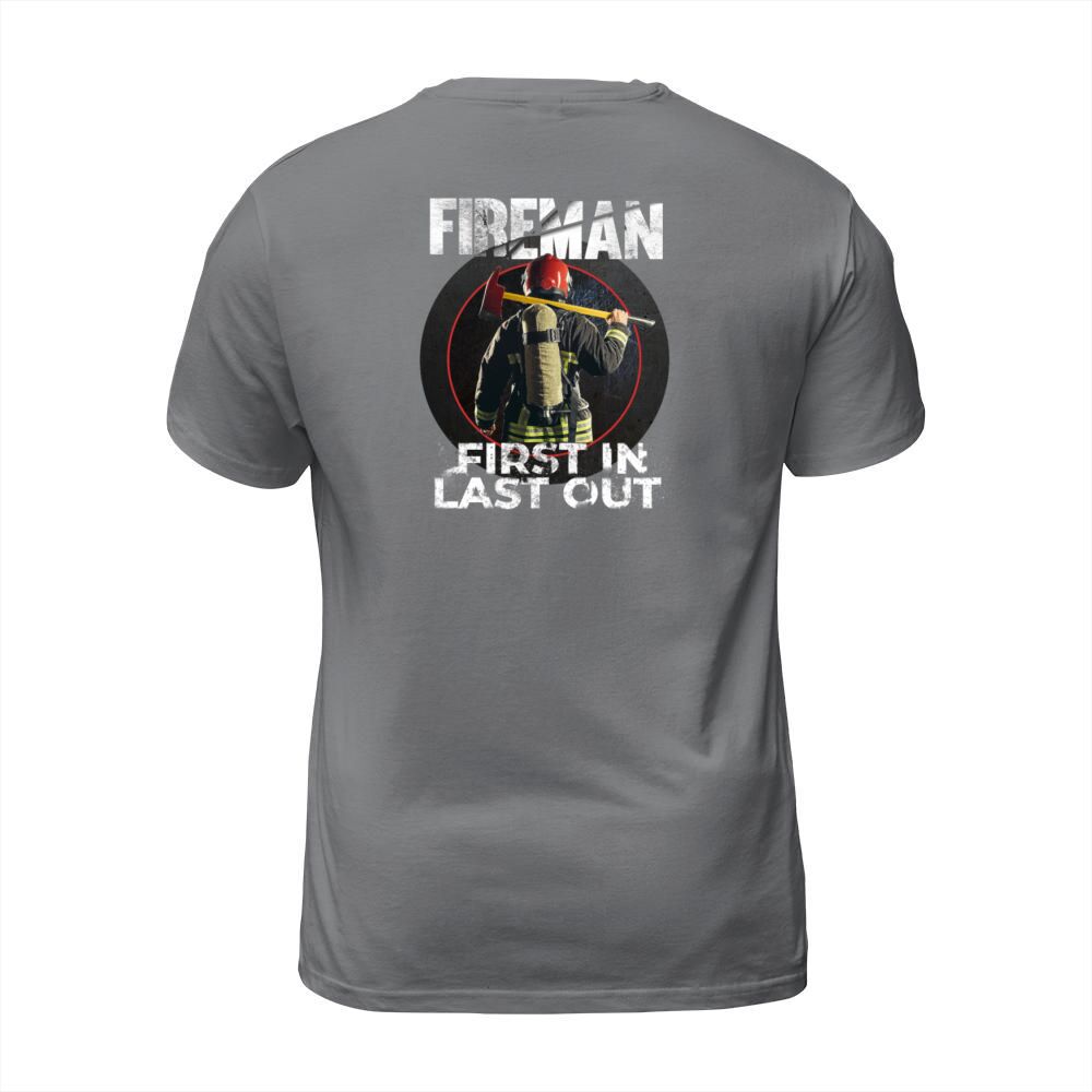 Shop Fireman - First In Last Out - Firegfighter Men's T-Shirt custom made just for you. Available on many styles, sizes, and colors.