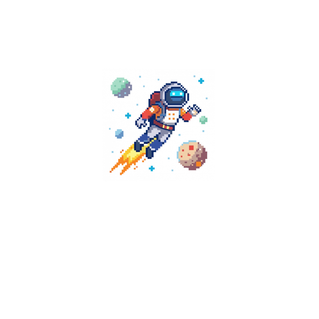 flying astronaut in space pixel