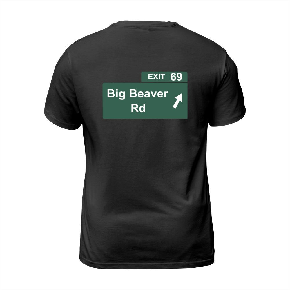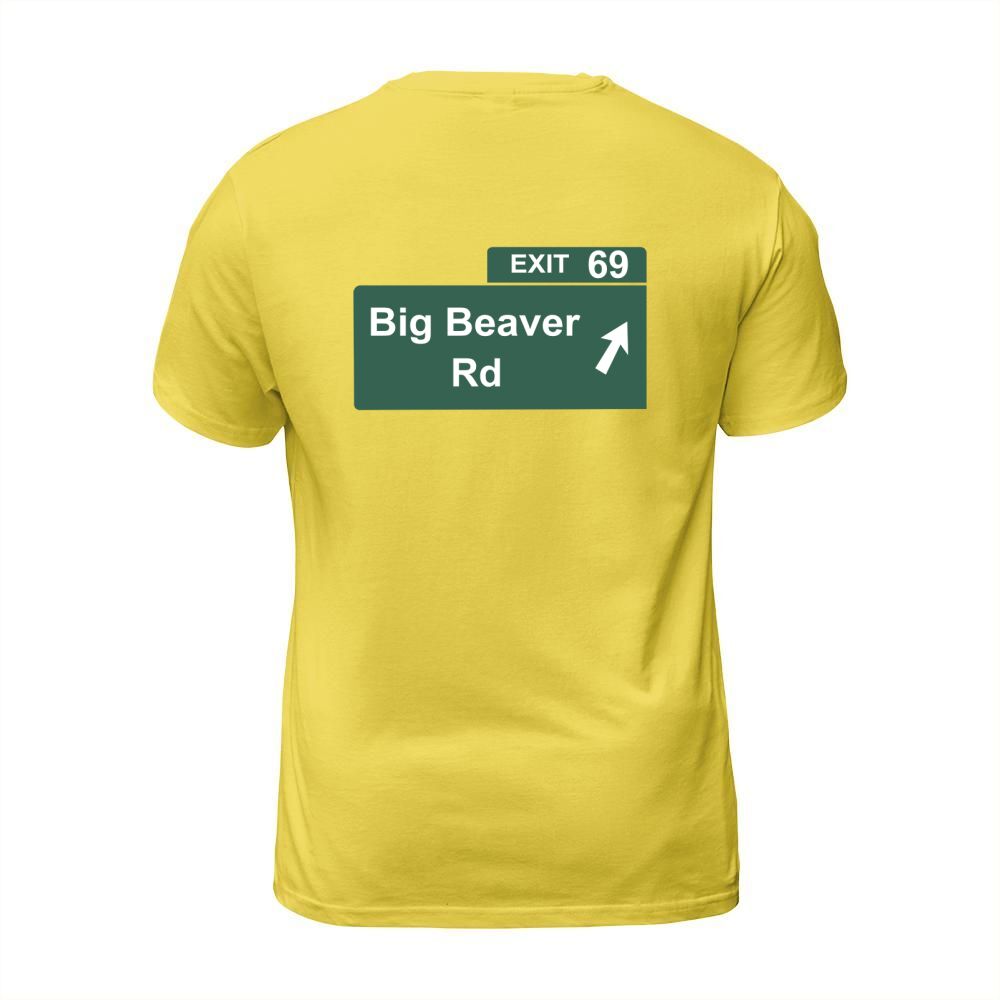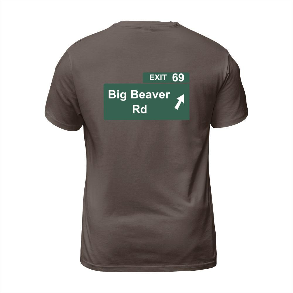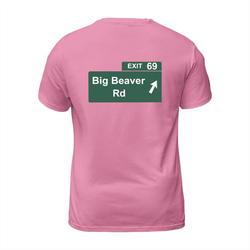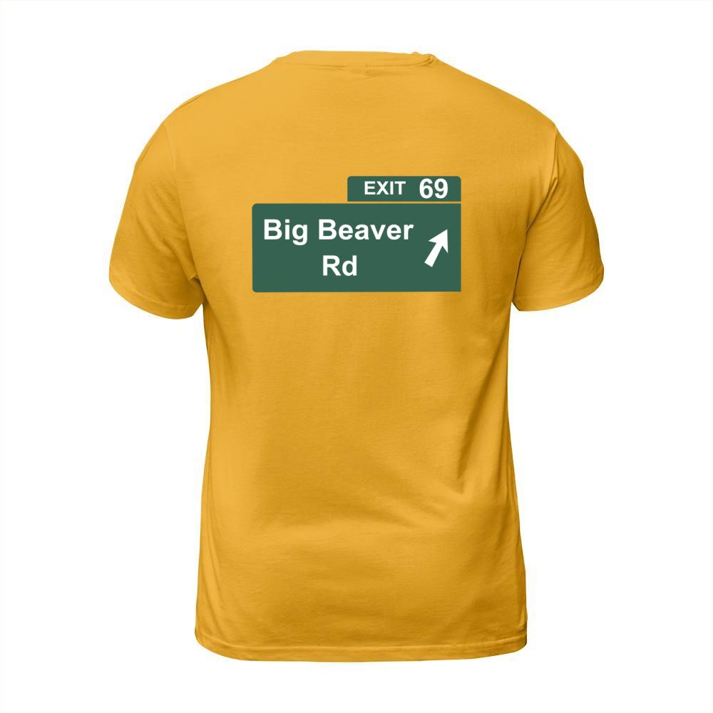 Shop Funny Big Beaver Exit 69 Sign T-Shirts T-Shirt Unisex custom made just for you. Available on many styles, sizes, and colors.