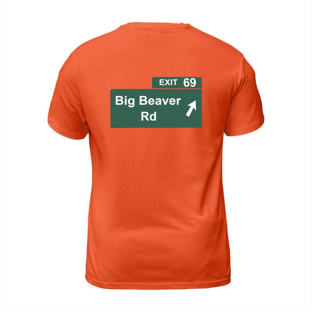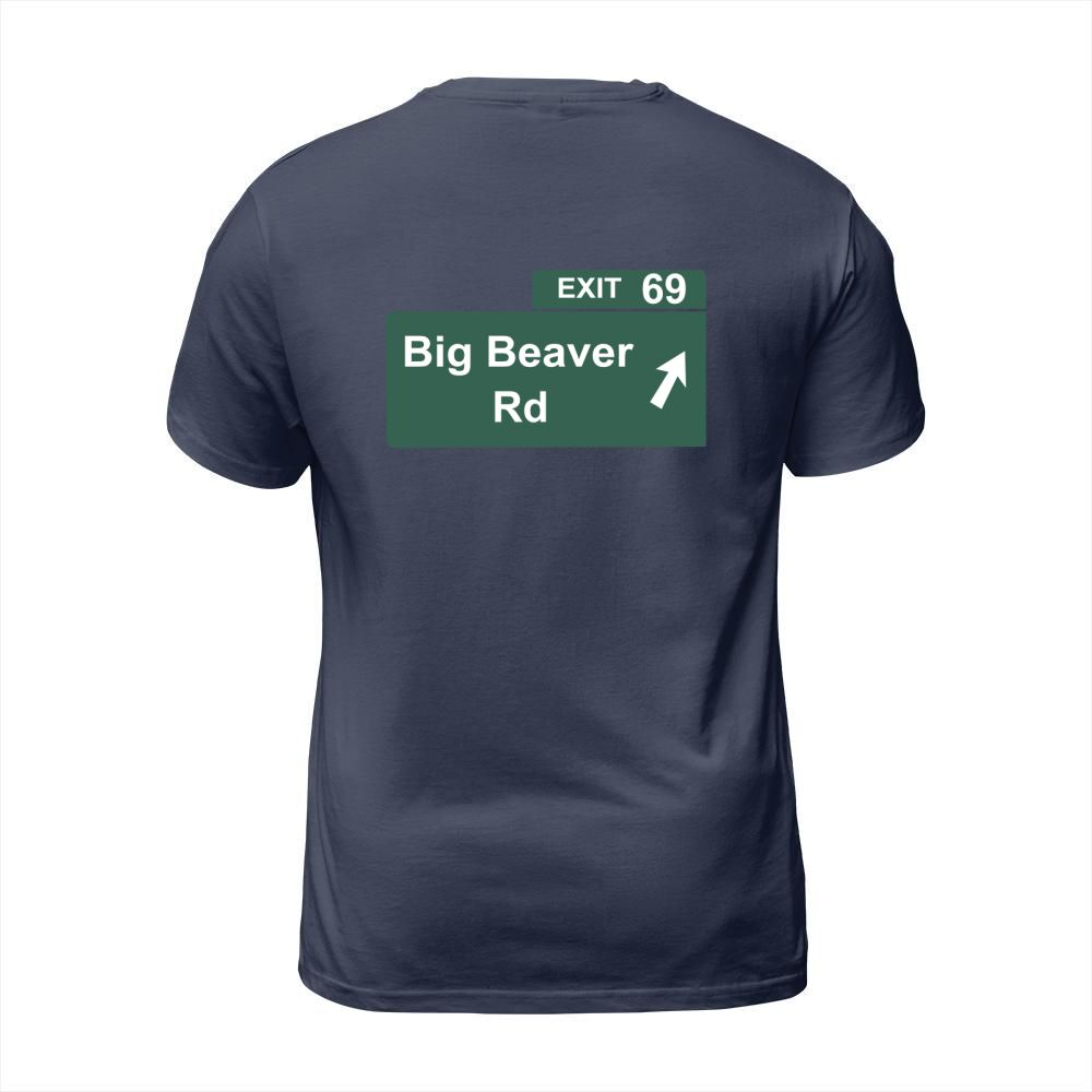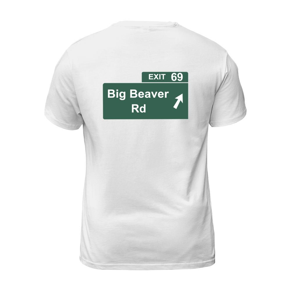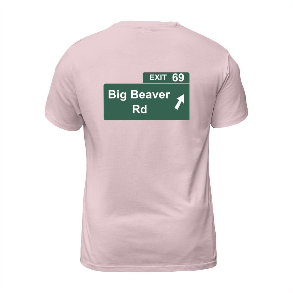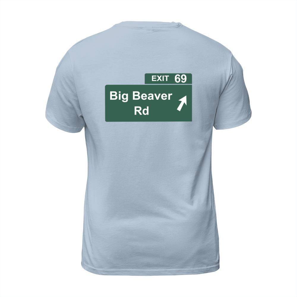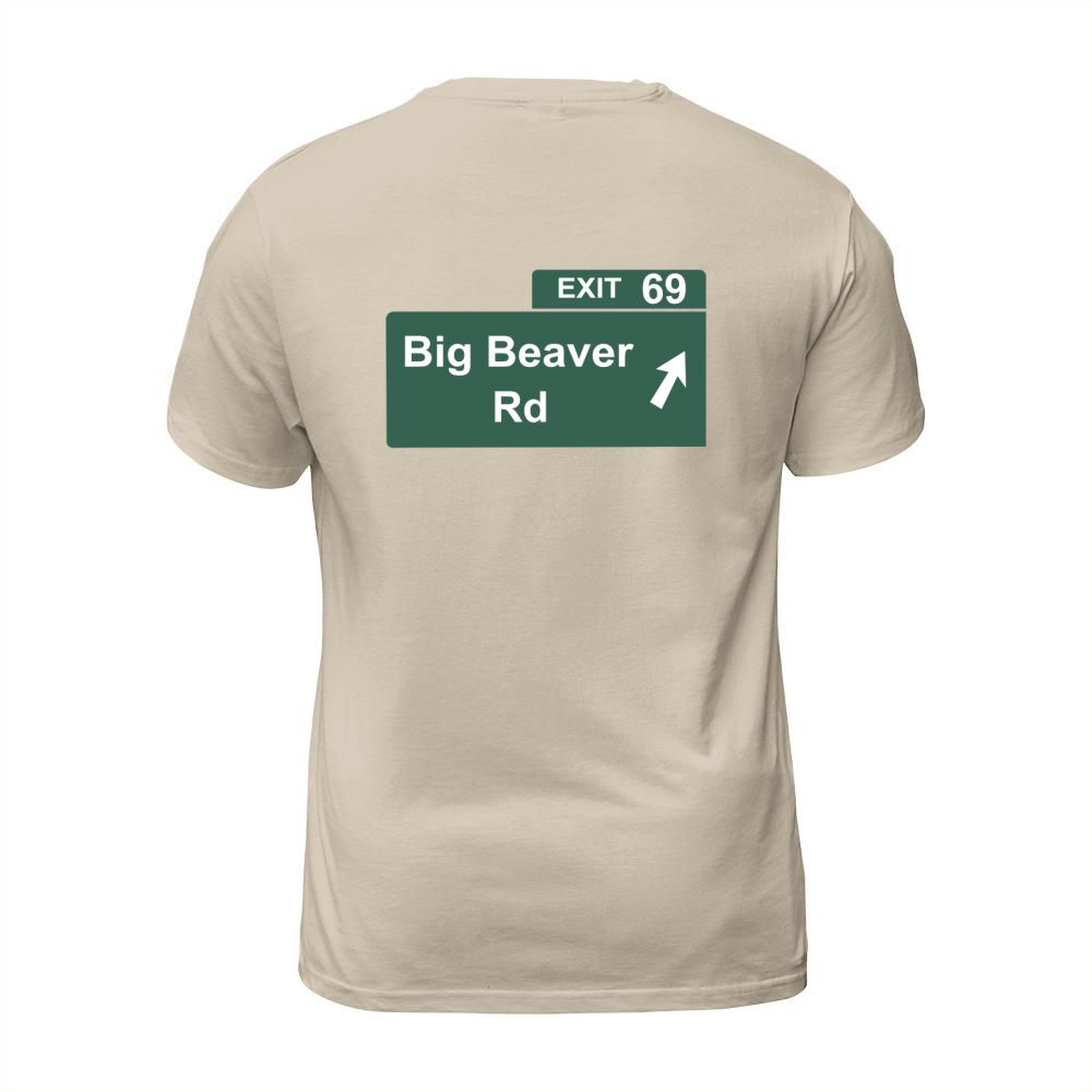 Shop Funny Big Beaver Exit 69 Sign T-Shirts T-Shirt Unisex custom made just for you. Available on many styles, sizes, and colors.