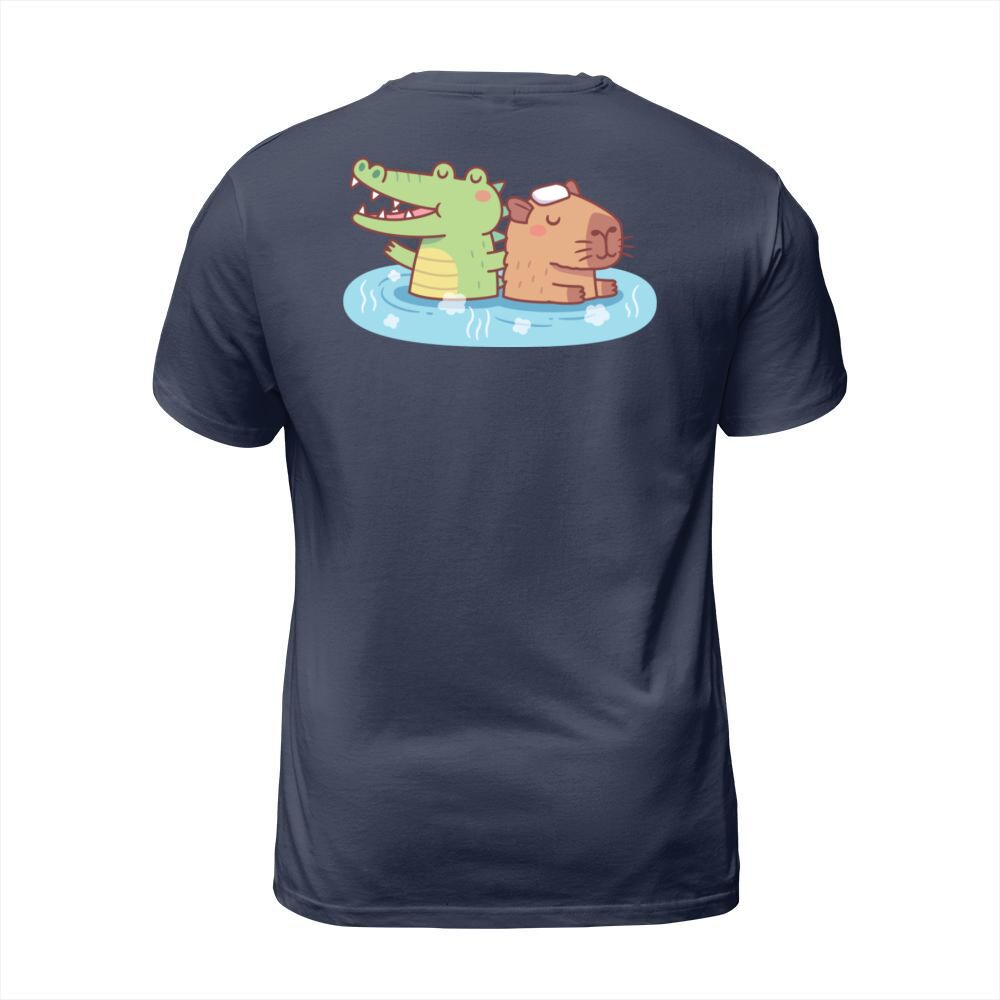 Shop Funny Crocodile And Capybara Chilling In Hot T-Shirt Unisex custom made just for you. Available on many styles, sizes, and colors.