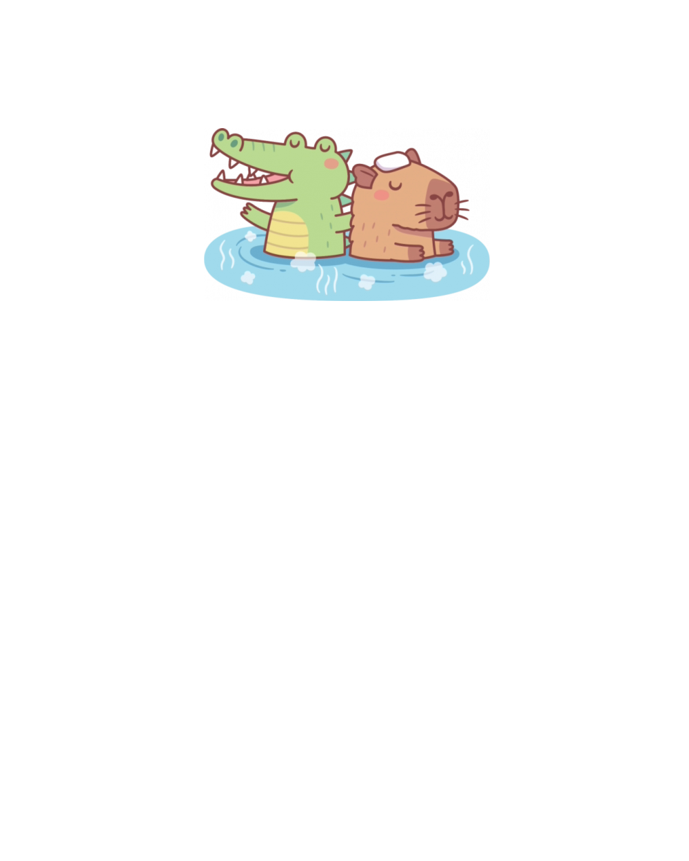 Funny Crocodile And Capybara Chilling In Hot