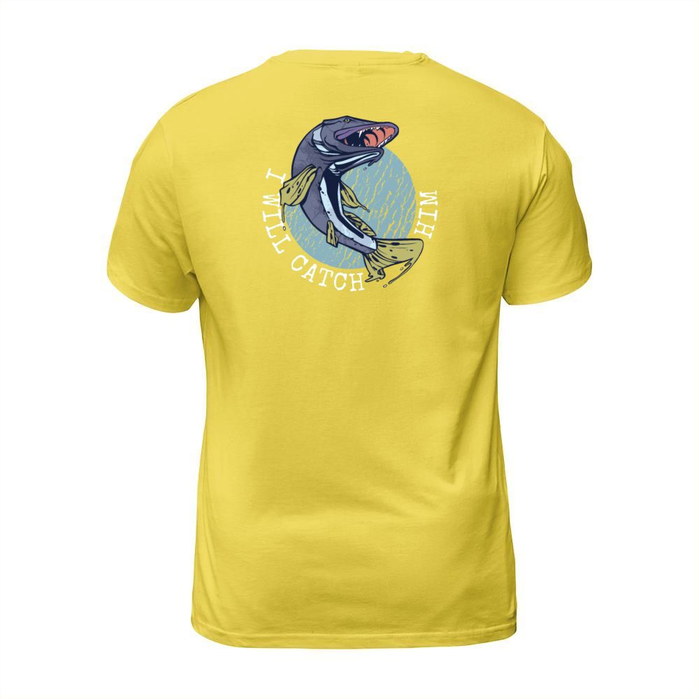 Shop Funny Fisherman statement: I will catch him Men's T-Shirt custom made just for you. Available on many styles, sizes, and colors.