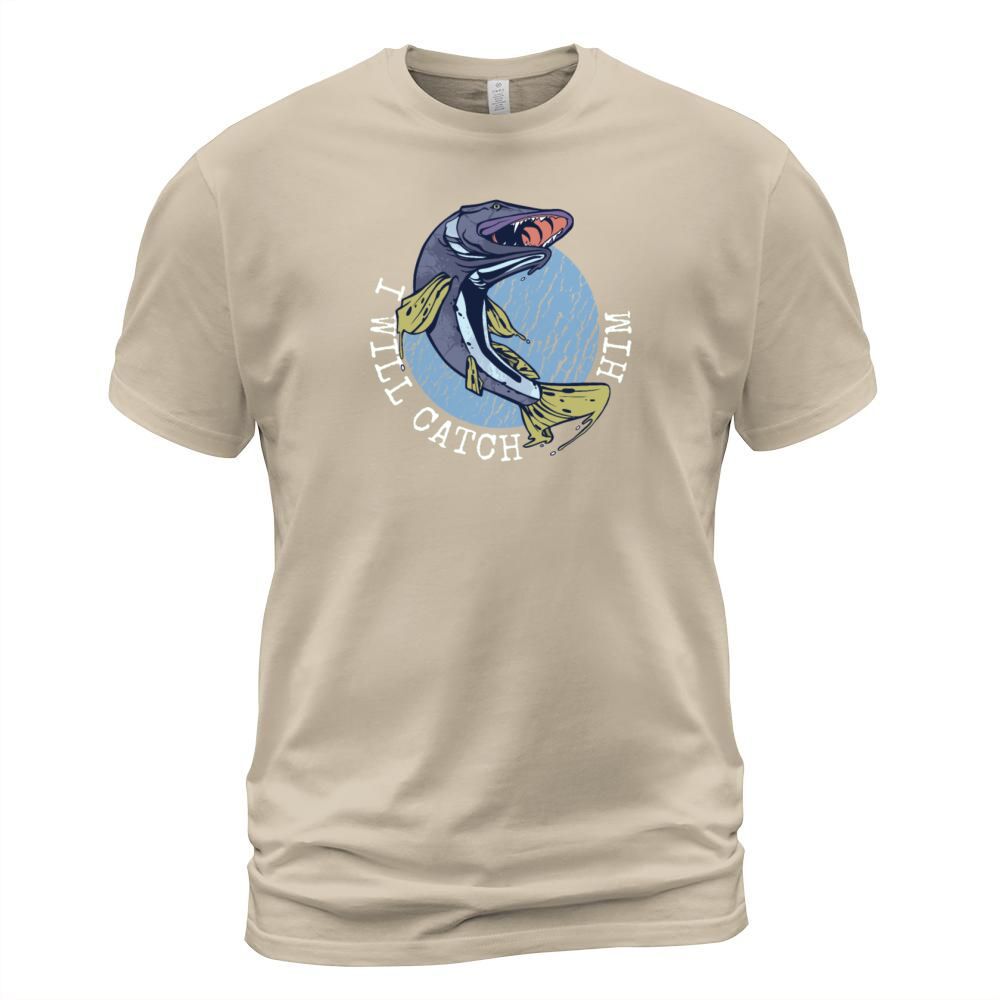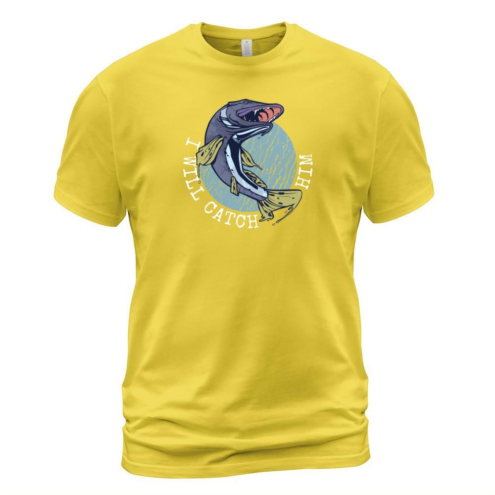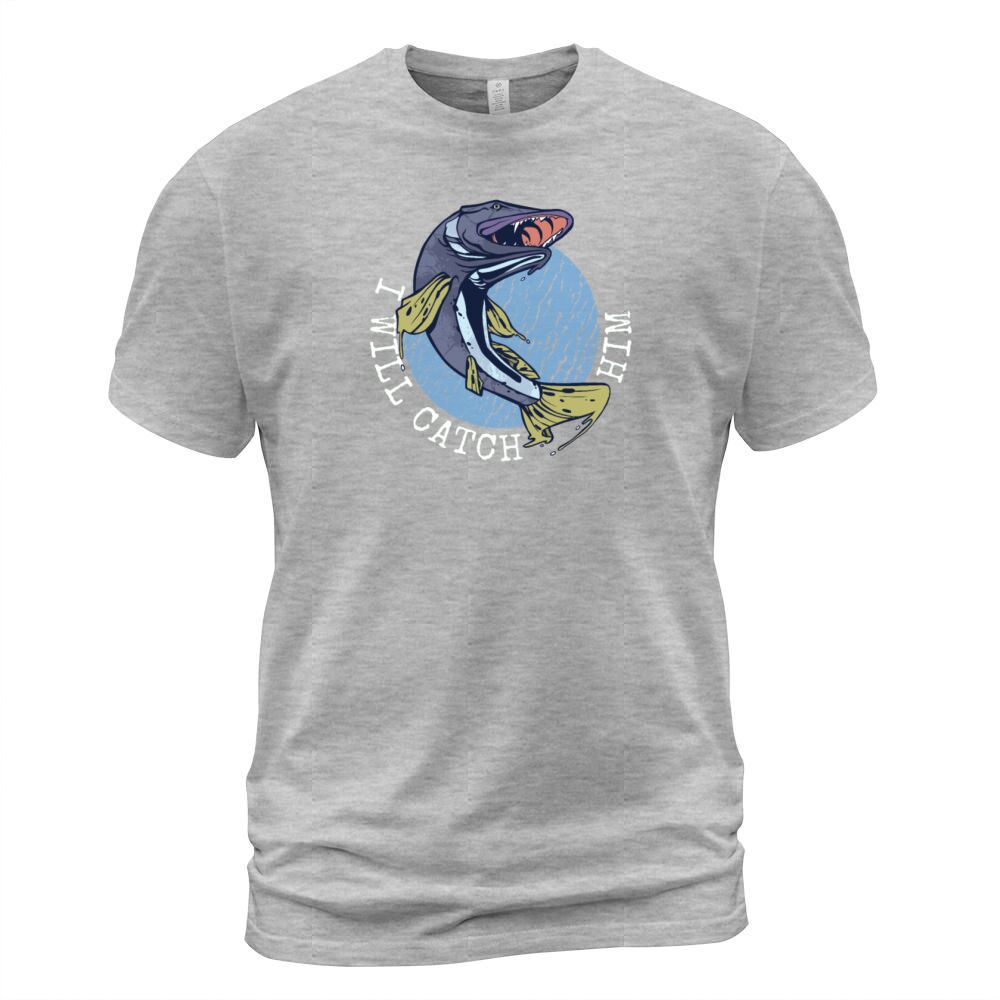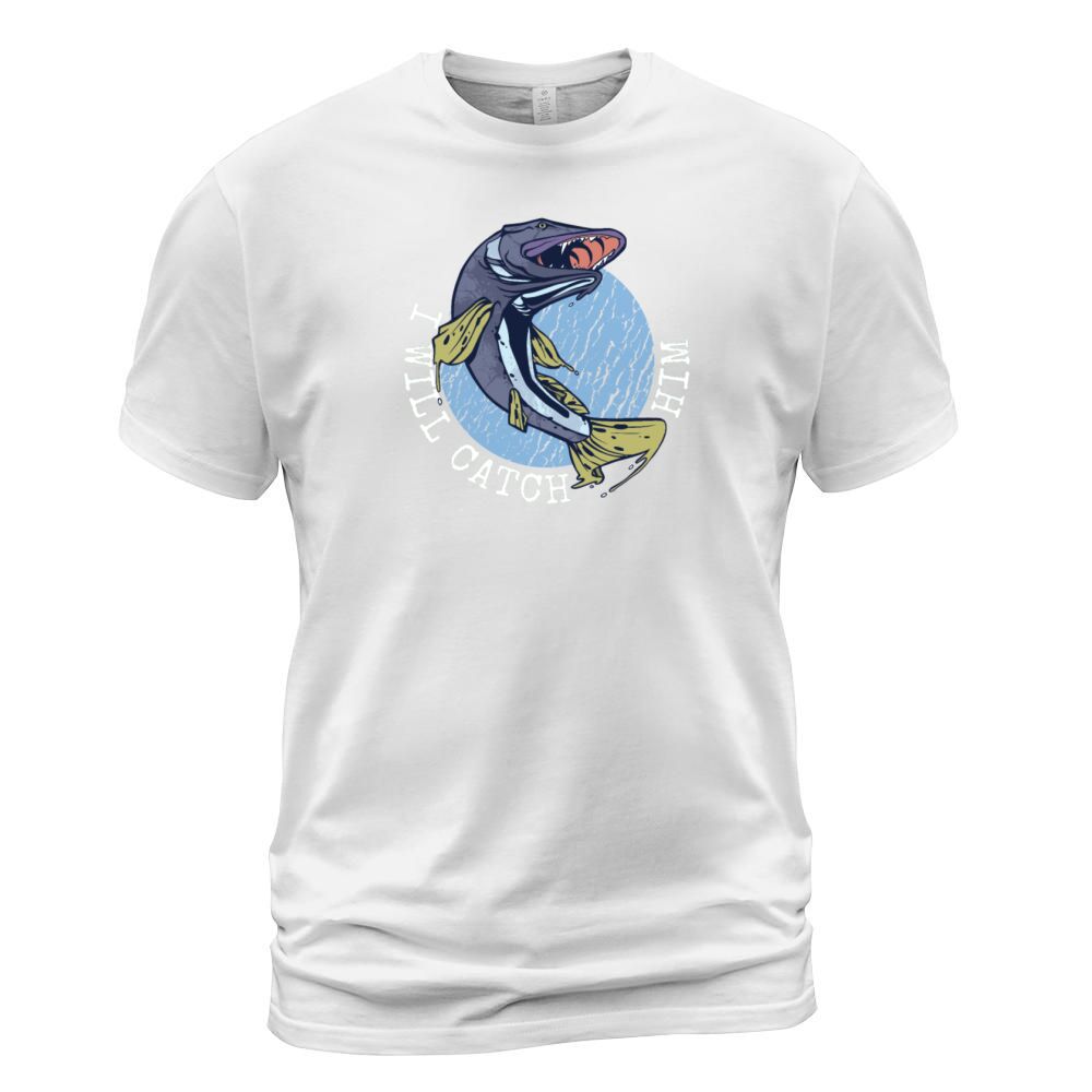 Shop Funny Fisherman statement: I will catch him Men's T-Shirt custom made just for you. Available on many styles, sizes, and colors.