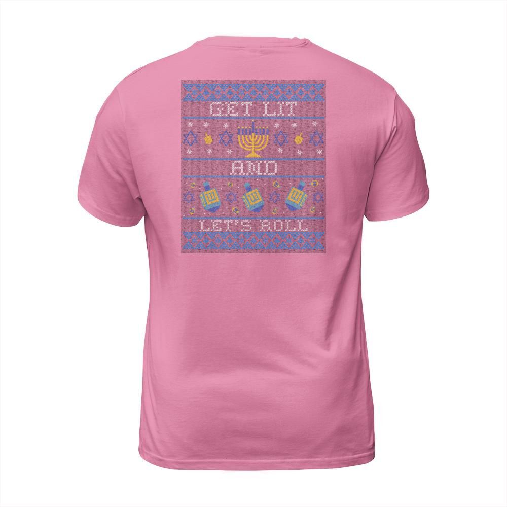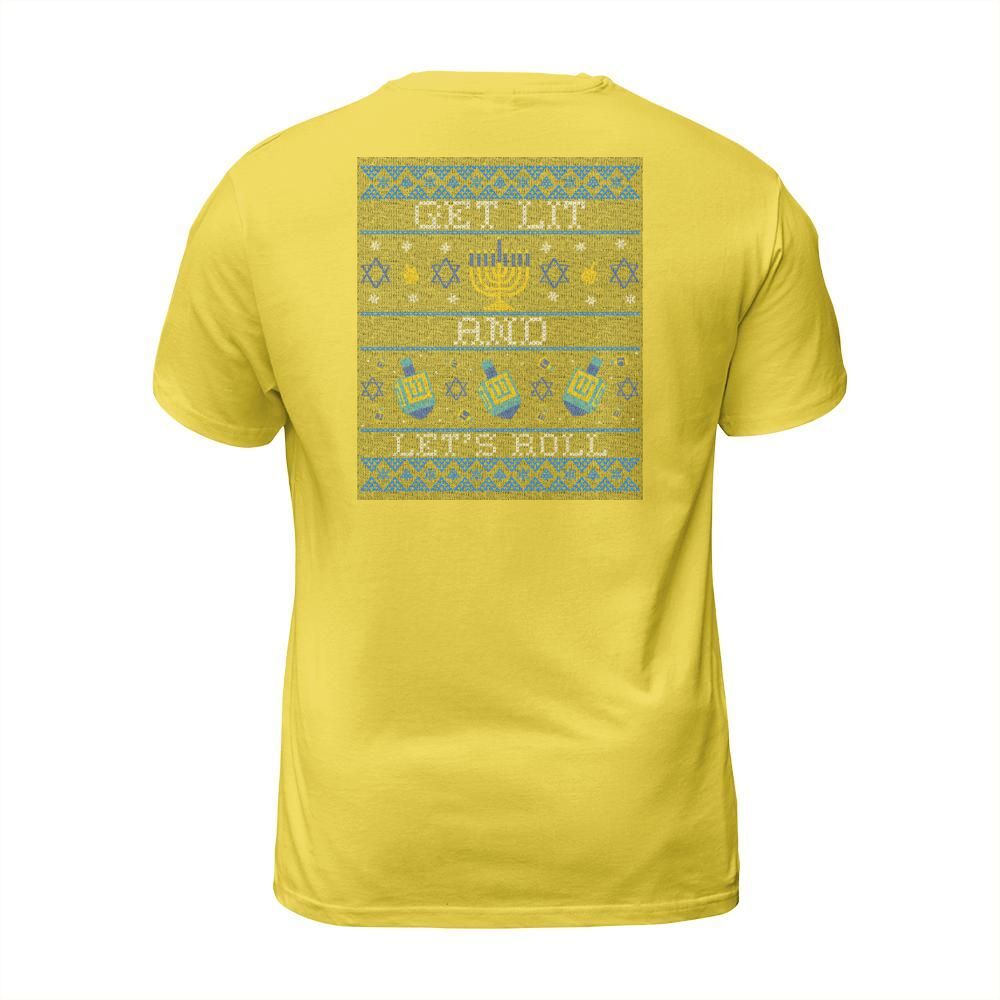 Shop Funny Hanukkah Ugly Get Lit and Lets Roll Men's T-Shirt custom made just for you. Available on many styles, sizes, and colors.