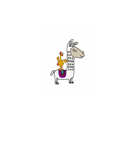 Funny rubber chicken riding llama cartoon