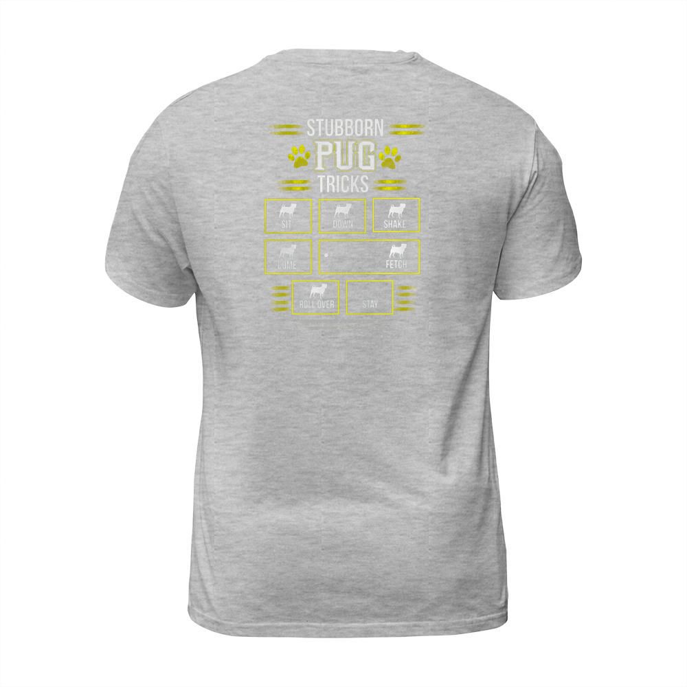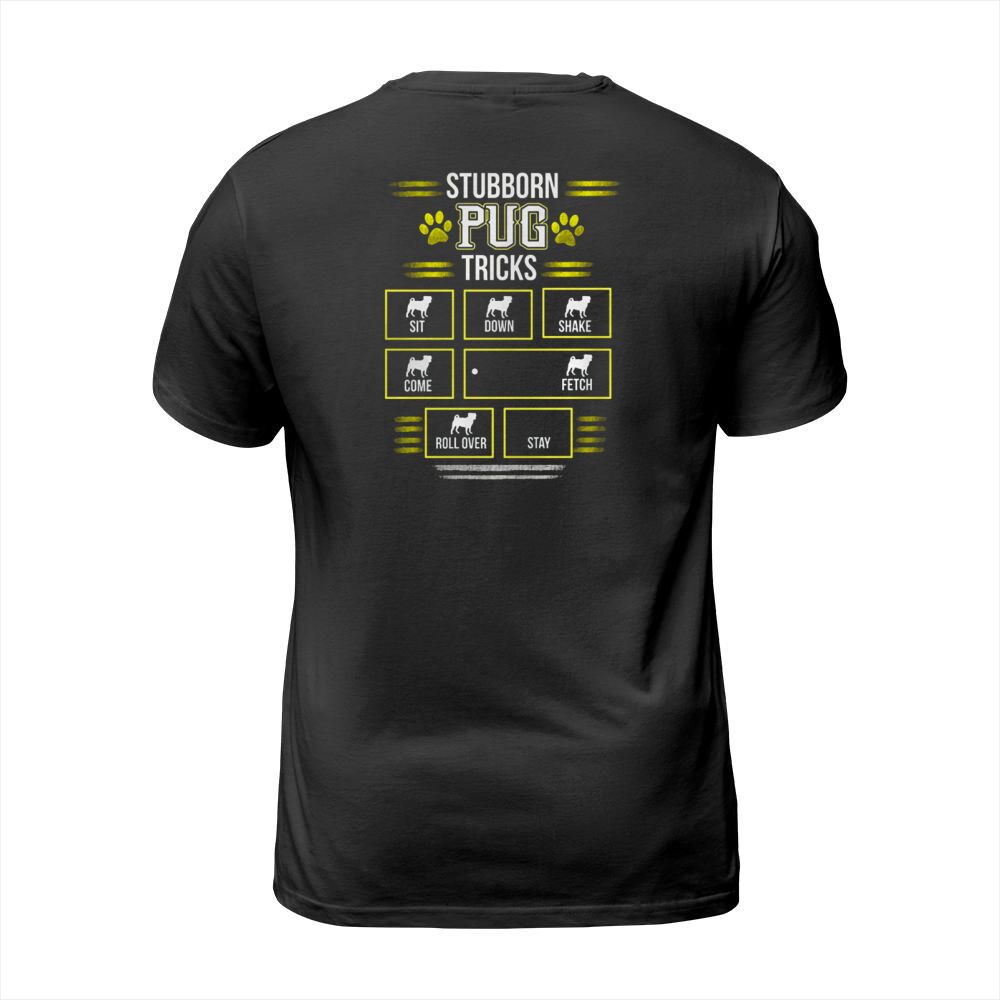 Shop Funny STUBBORN PUG TRICKS TShirt T-Shirt Unisex custom made just for you. Available on many styles, sizes, and colors.