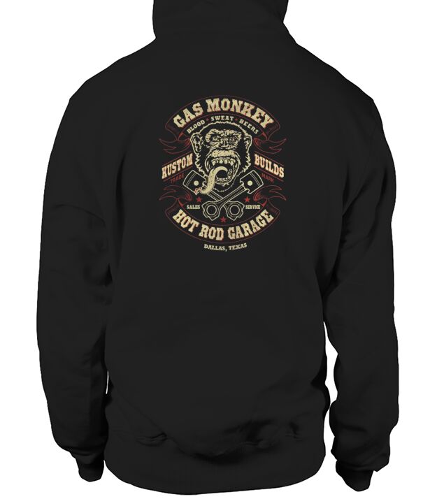 Shop Gas Monkey Hot Rod Garage Hoodie Unisex custom made just for you. Available on many styles, sizes, and colors.