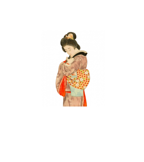 Geisha in Kimono with a Cat Retro art