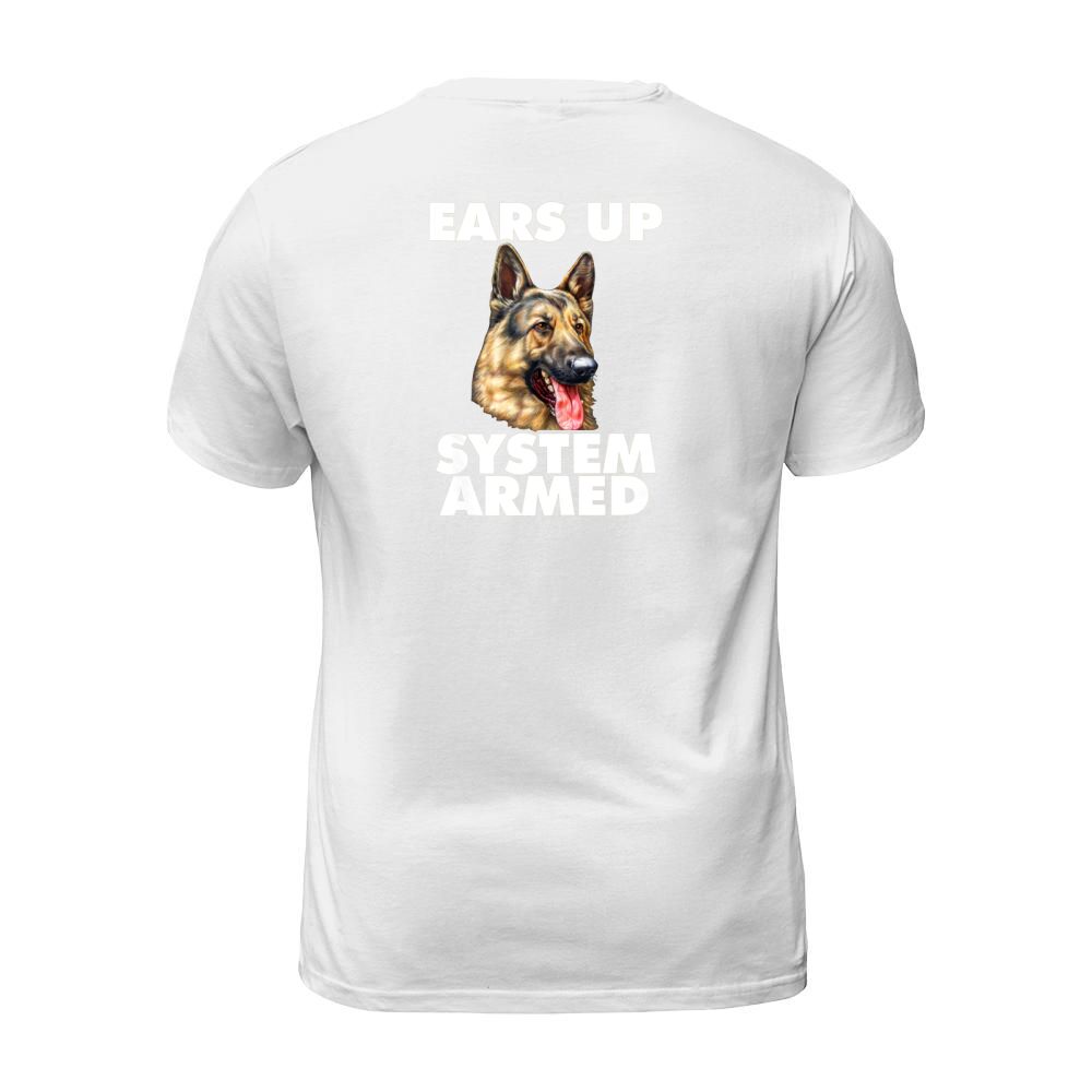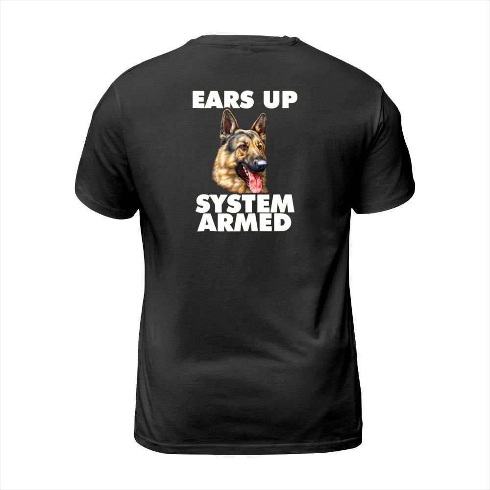 Shop German Shepherd Ears Up System Armed T-Shirt Unisex custom made just for you. Available on many styles, sizes, and colors.
