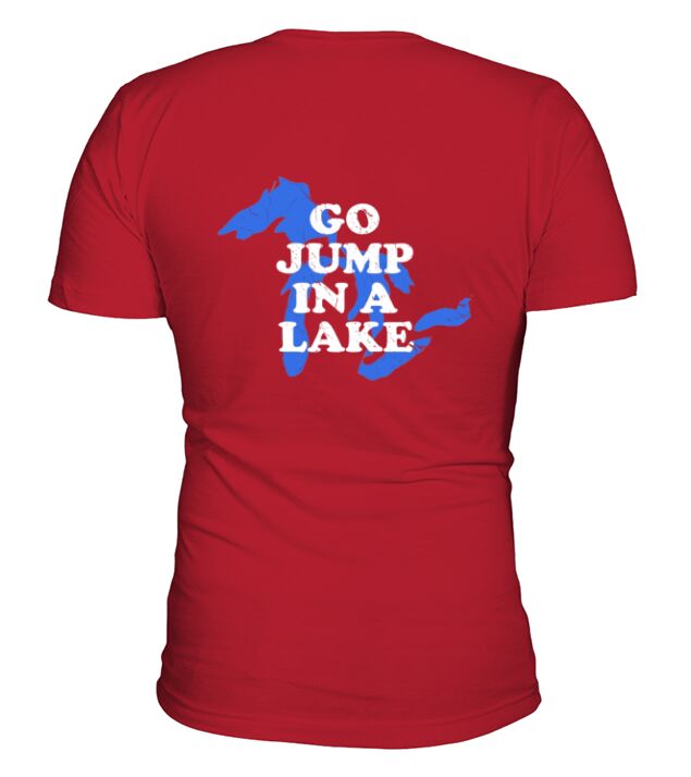 Shop Go Jump In A Lake Michigan Great Lakes V-Neck T-shirt custom made just for you. Available on many styles, sizes, and colors.