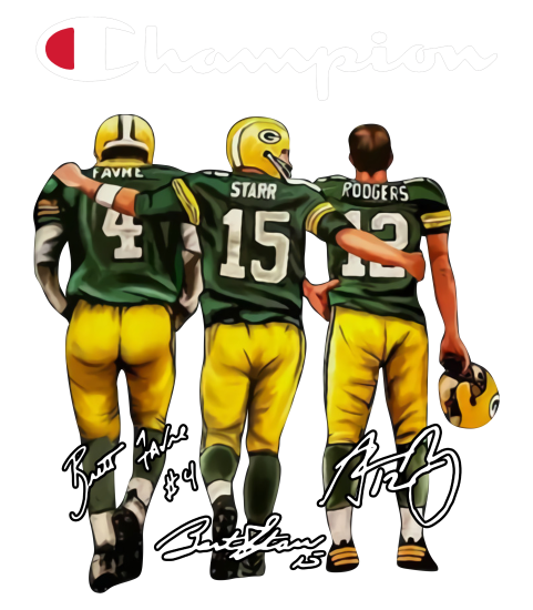 Shop Green Bay Packer Champion Brett Favre Bart Starr Aaron Charles Rodgers Signatures V-neck T-Shirt Woman custom made just for you. Available on many styles, sizes, and colors.