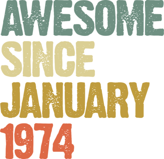 Shop Groovy Retro Awesome Since January 1974 Long sleeved Unisex custom made just for you. Available on many styles, sizes, and colors.