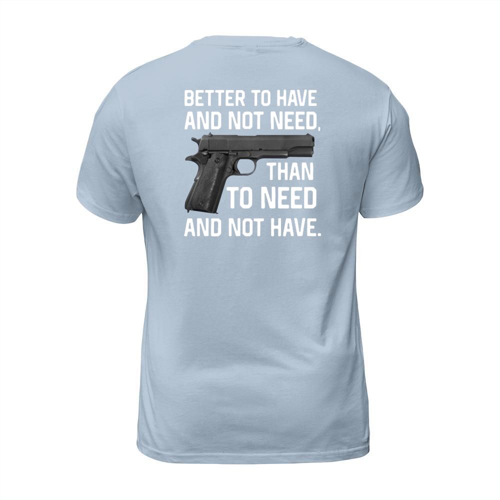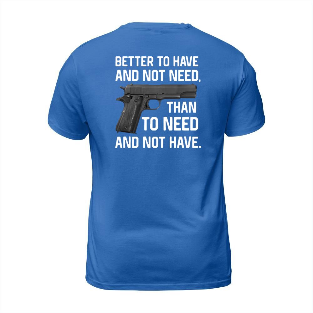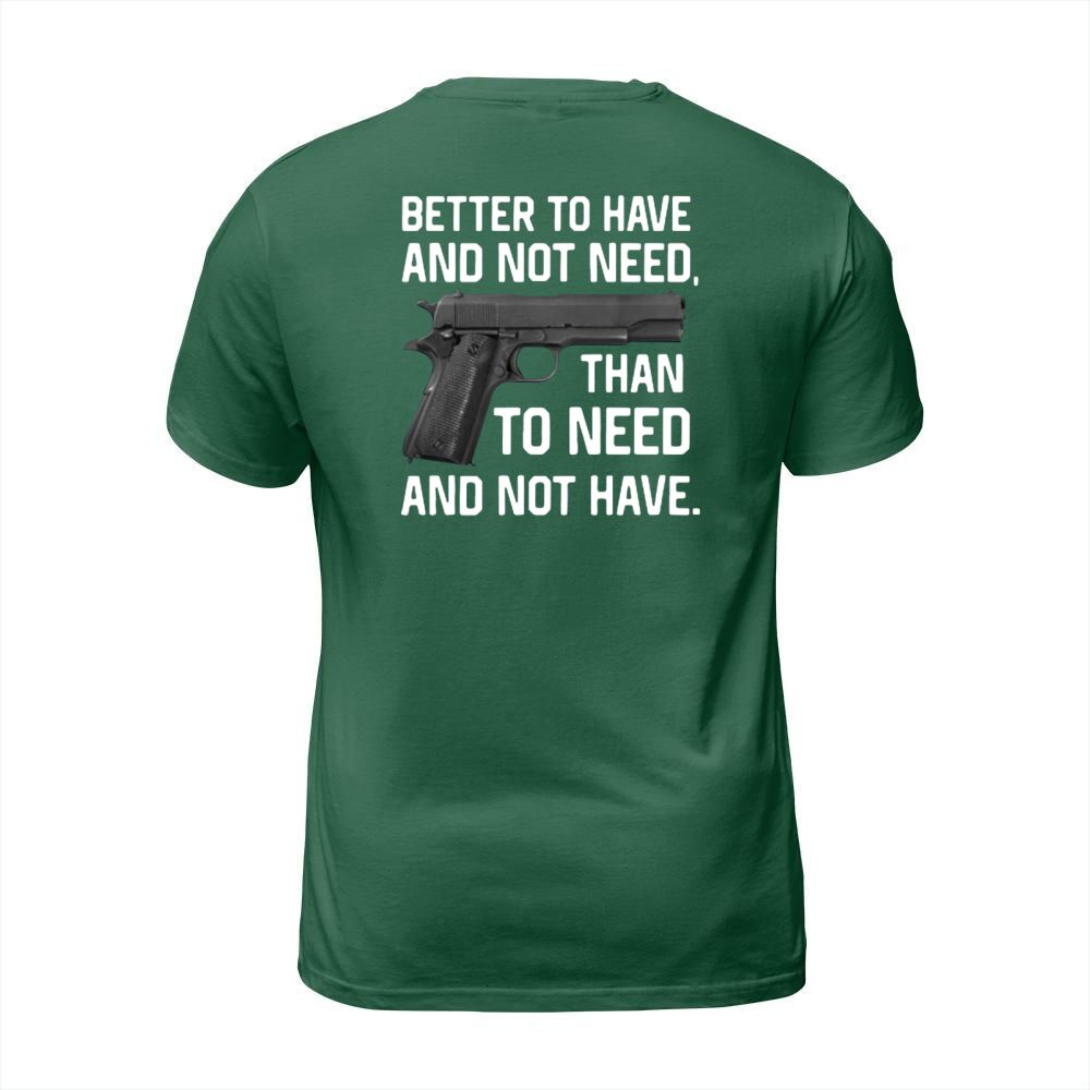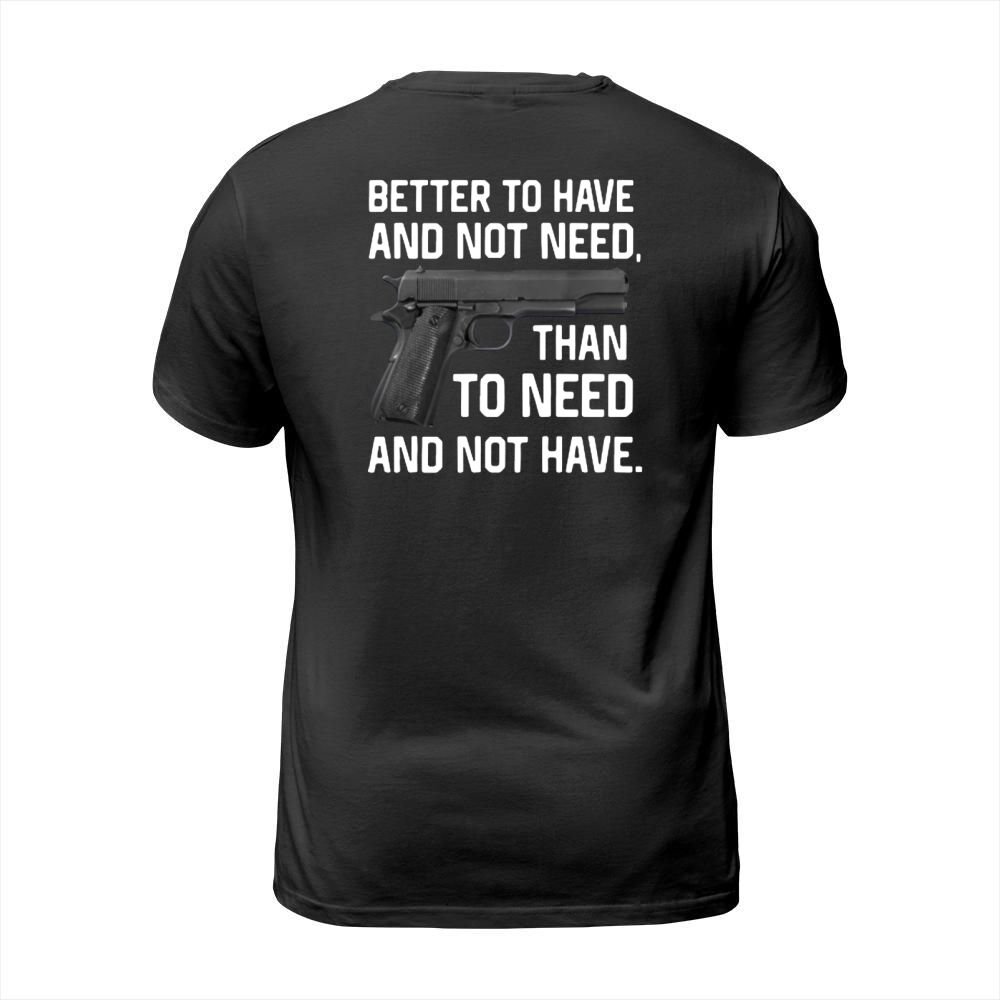 Shop Gun Better To Have And Not Need Than To Need And Not Have shirt T-Shirt Unisex custom made just for you. Available on many styles, sizes, and colors.