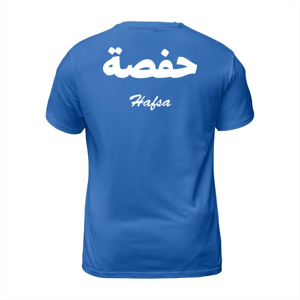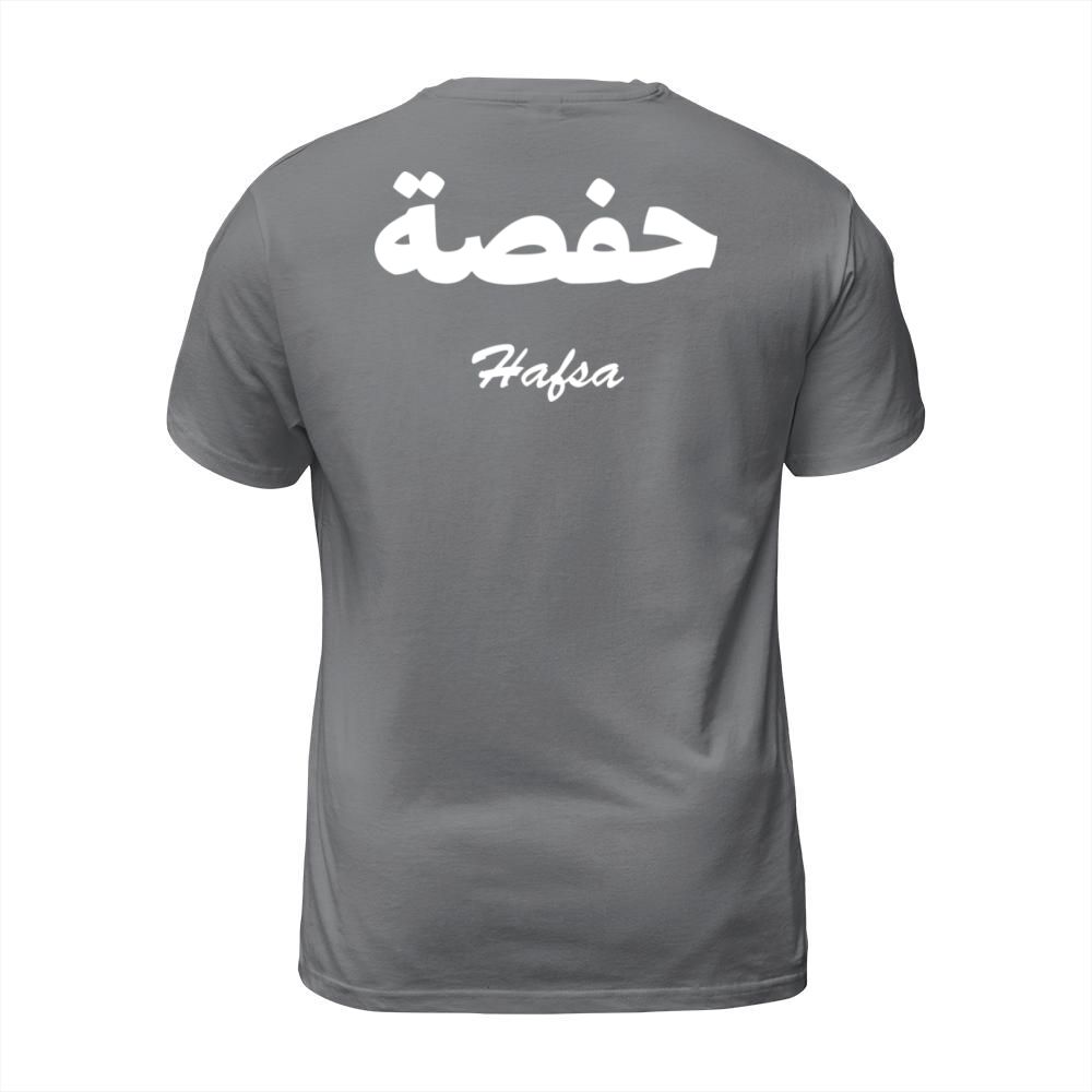 Shop Hafsa Arabic Calligraphy First Name Men's T-Shirt custom made just for you. Available on many styles, sizes, and colors.