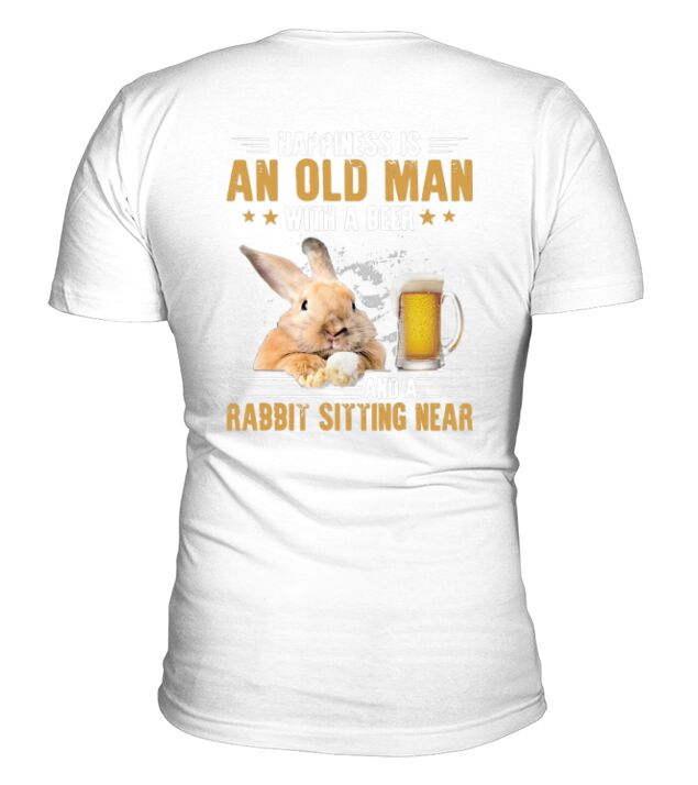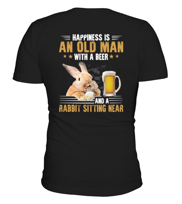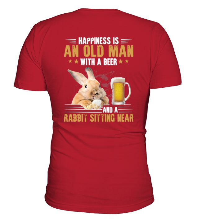 Shop Happiness is an old man with a beer and a rabbit sitting near V-Neck T-shirt custom made just for you. Available on many styles, sizes, and colors.