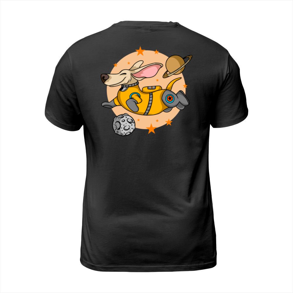 Shop Happy Dog And Planets Men's T-Shirt custom made just for you. Available on many styles, sizes, and colors.