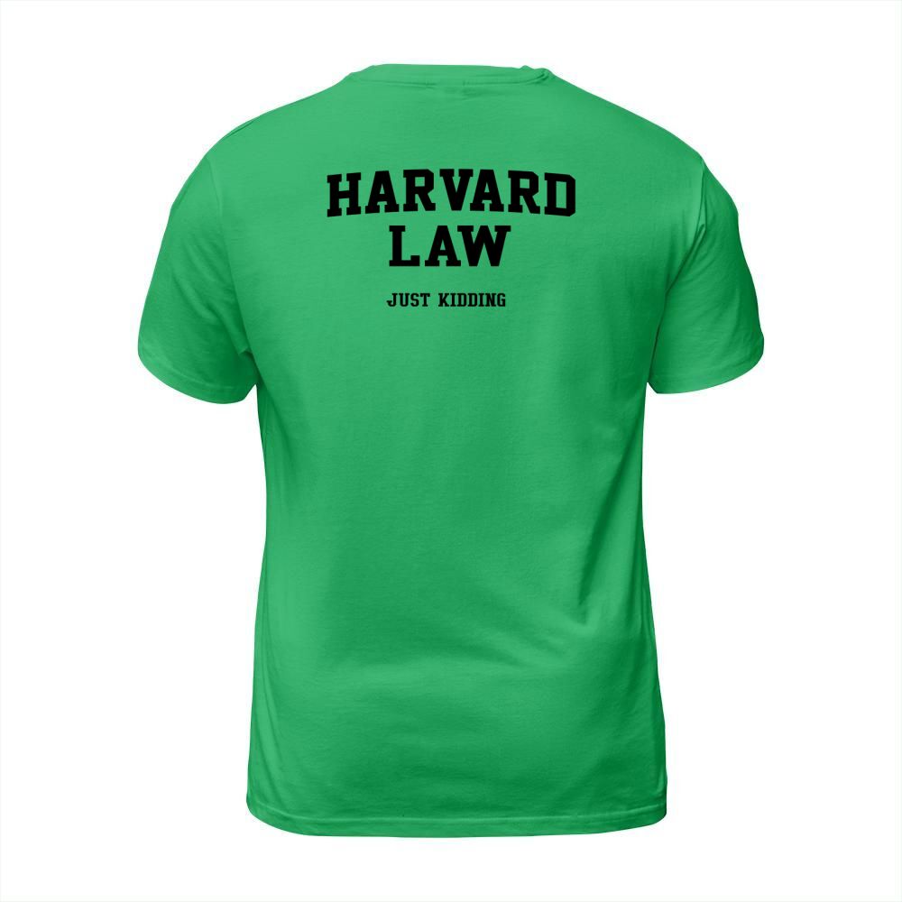 Shop Harvard Law just kidding T-Shirt Unisex custom made just for you. Available on many styles, sizes, and colors.