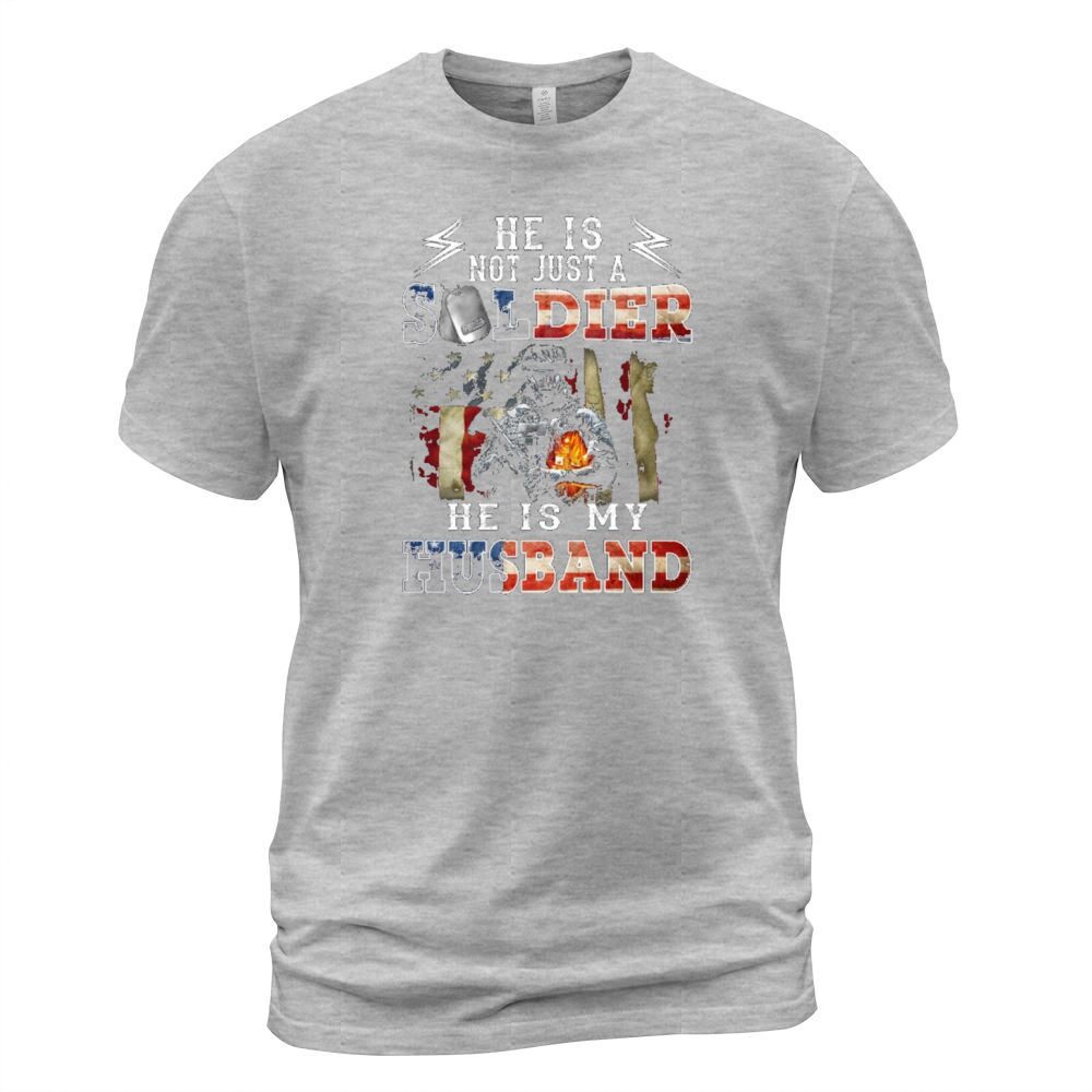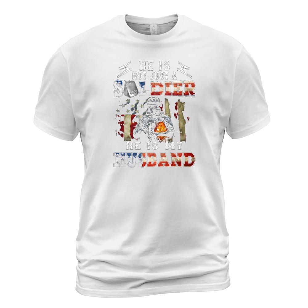 Shop He Is Not Just A Soldier He Is My Husband T-Shirt Unisex custom made just for you. Available on many styles, sizes, and colors.