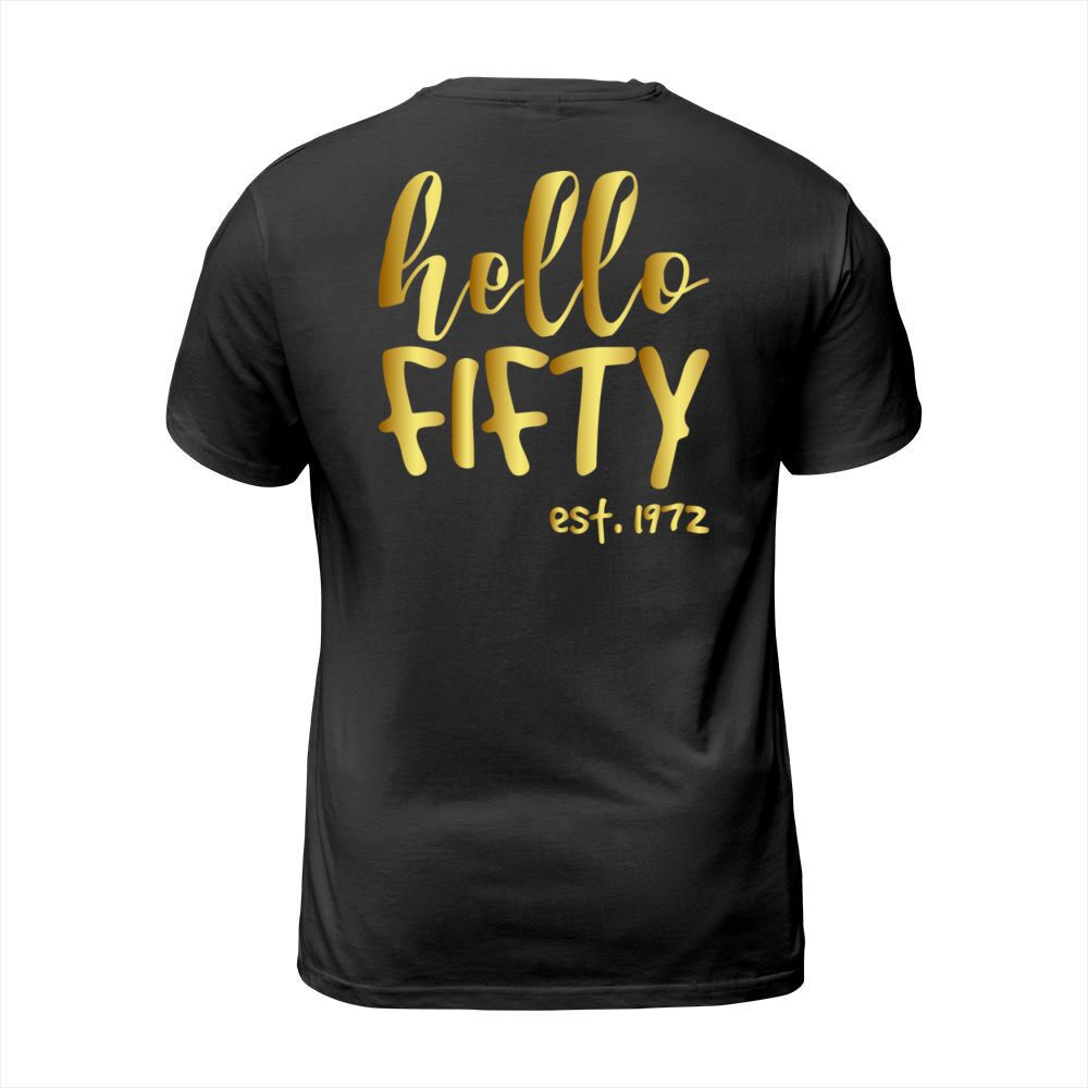Shop Hello fifty est 1972 - hello 50 T-Shirt Unisex custom made just for you. Available on many styles, sizes, and colors.