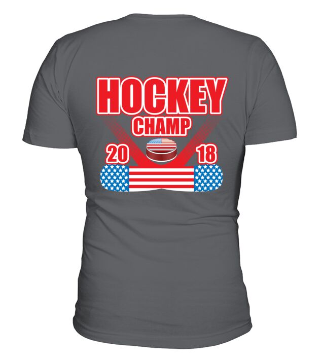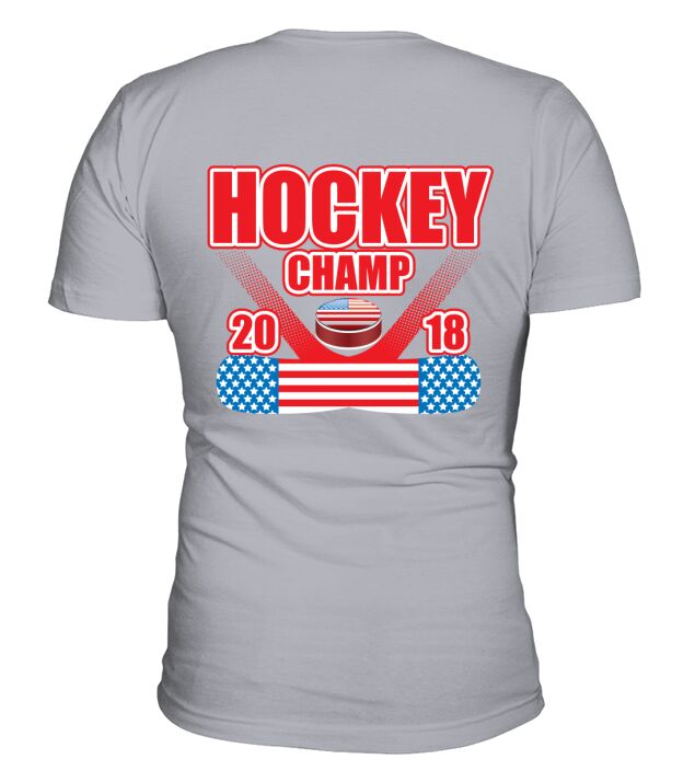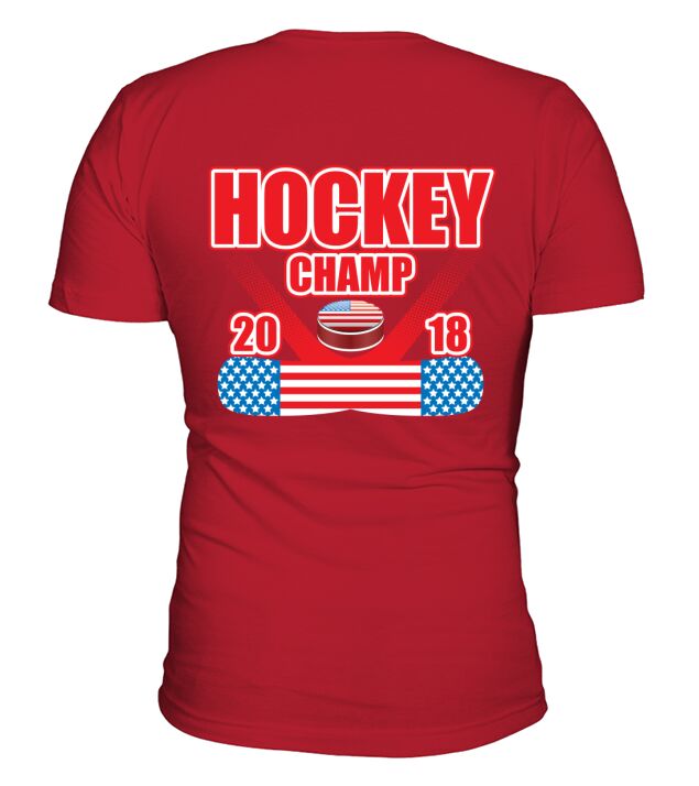 Shop Hockey champ 2018 V-Neck T-shirt custom made just for you. Available on many styles, sizes, and colors.