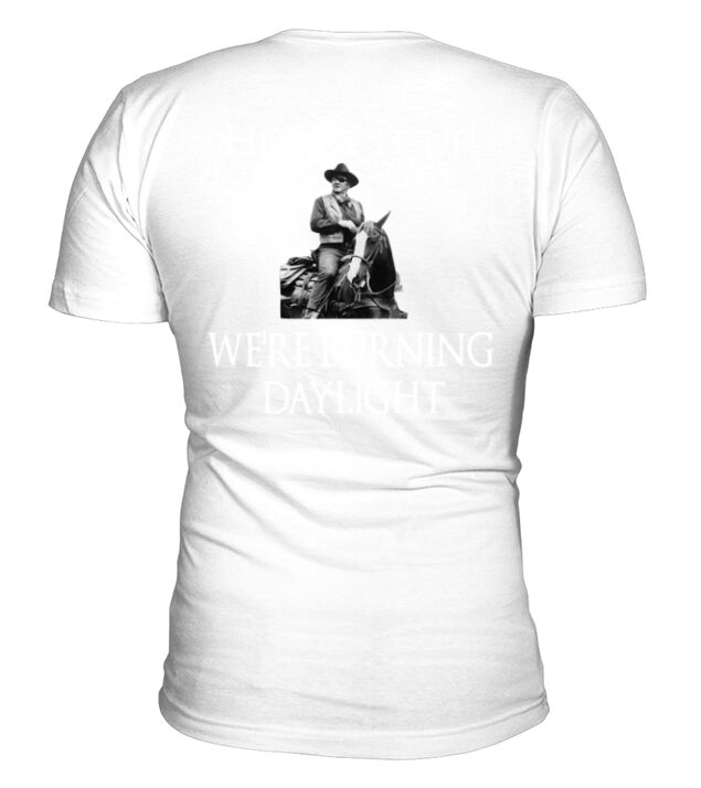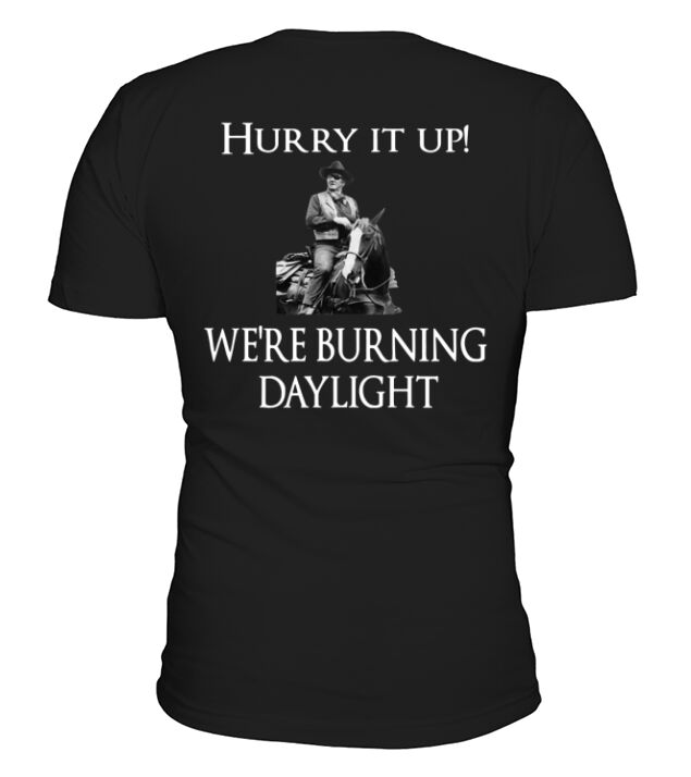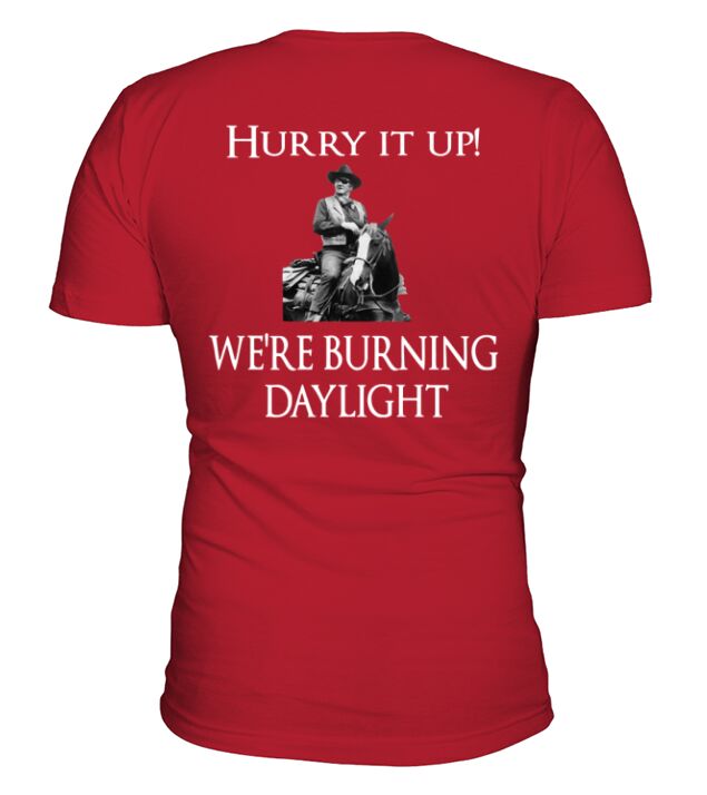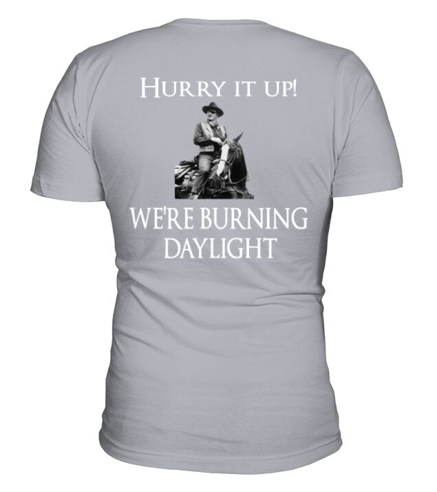 Shop Hurry it up were burning daylight V-Neck T-shirt custom made just for you. Available on many styles, sizes, and colors.