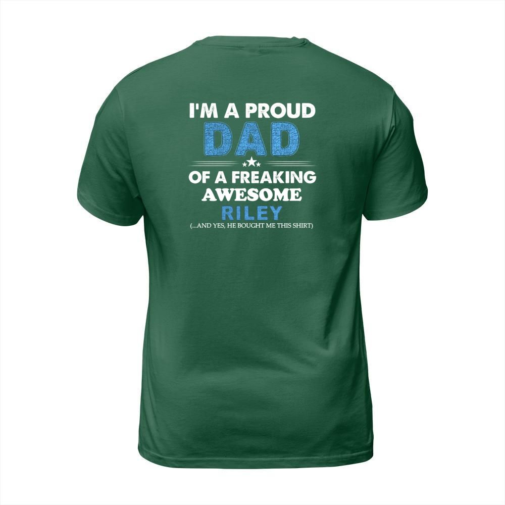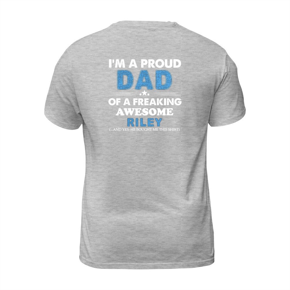 Shop I am a Proud Dad Of A Freaking Awesome Riley T-Shirt Unisex custom made just for you. Available on many styles, sizes, and colors.