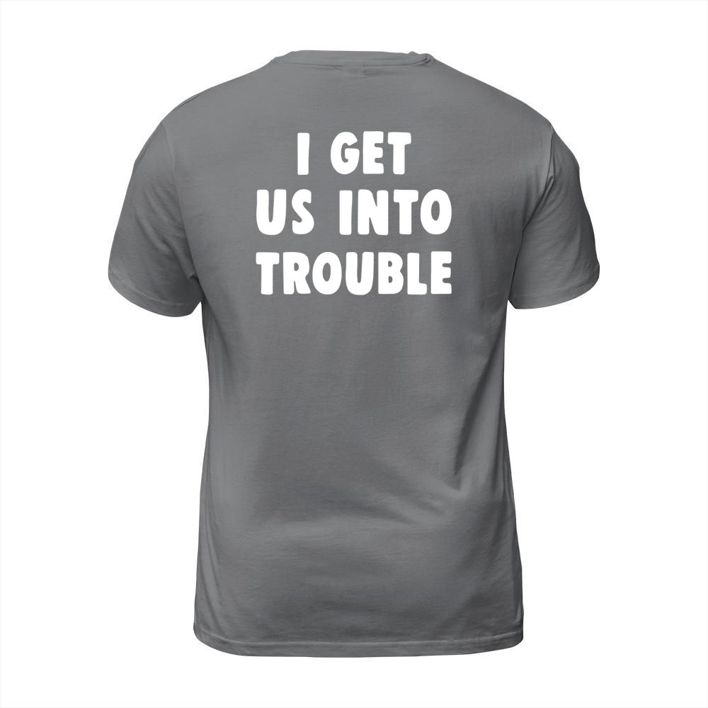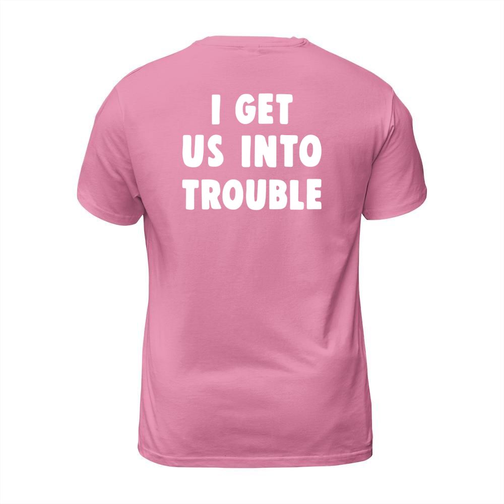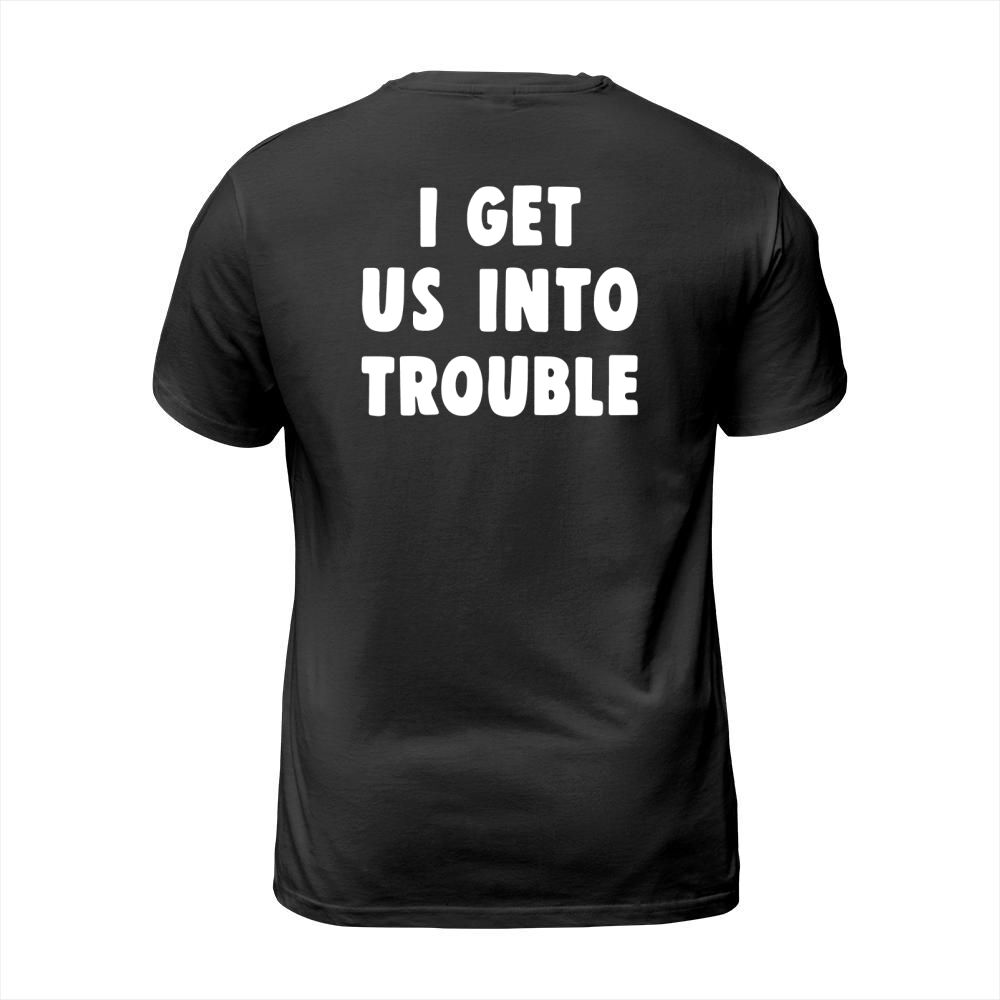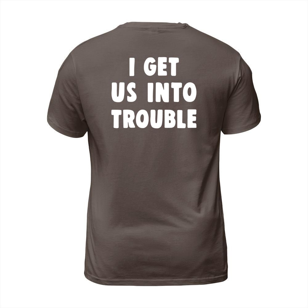 Shop I get us into trouble T-Shirt Unisex custom made just for you. Available on many styles, sizes, and colors.