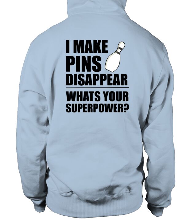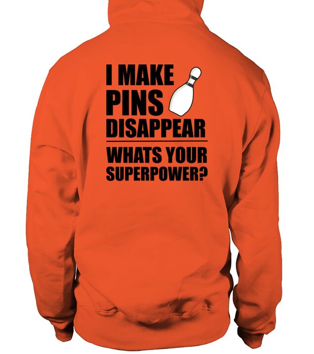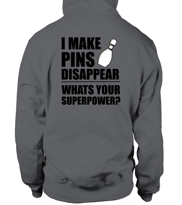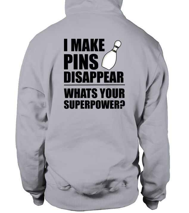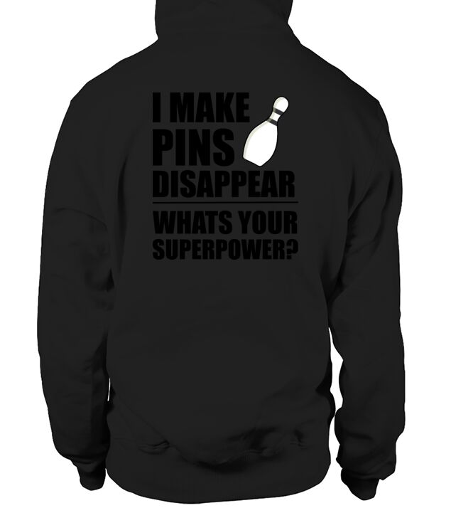 Shop I Make Pins Disappear Superpowr Bowling Men's Hoodie custom made just for you. Available on many styles, sizes, and colors.
