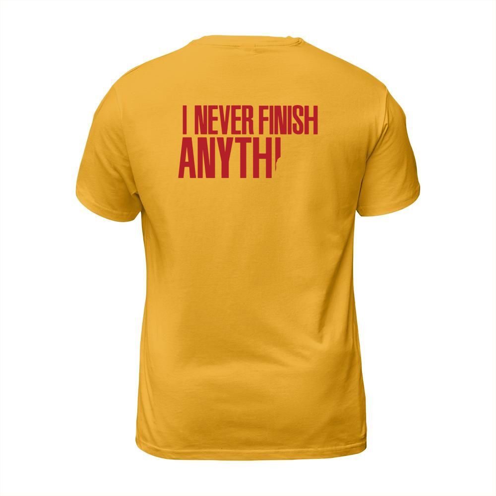 Shop I never finish anything T-Shirt Unisex custom made just for you. Available on many styles, sizes, and colors.