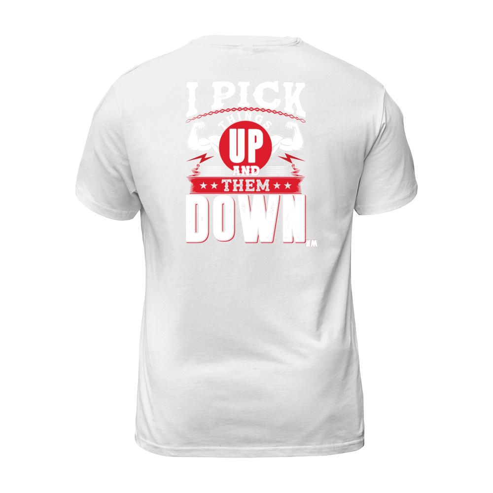 Shop I pick things up and them down T-Shirt Unisex custom made just for you. Available on many styles, sizes, and colors.