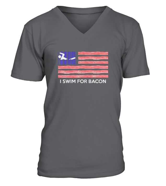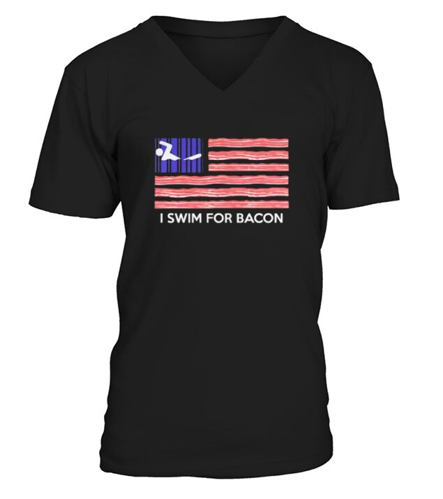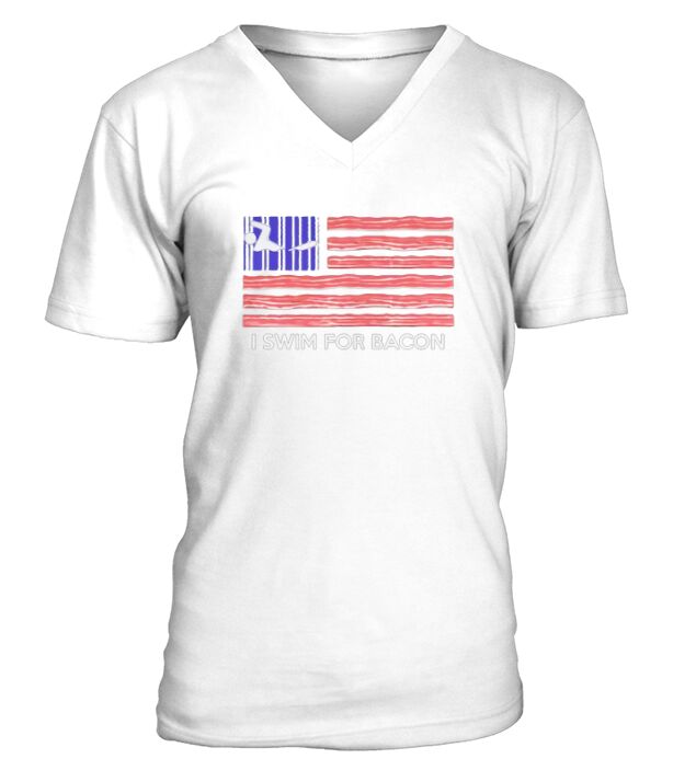 Shop I SWIM FOR BACON - AMERICA FLAG V-Neck T-shirt custom made just for you. Available on many styles, sizes, and colors.