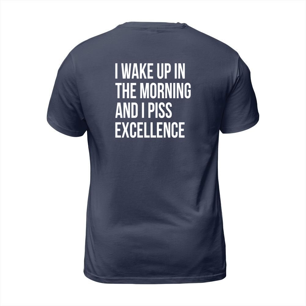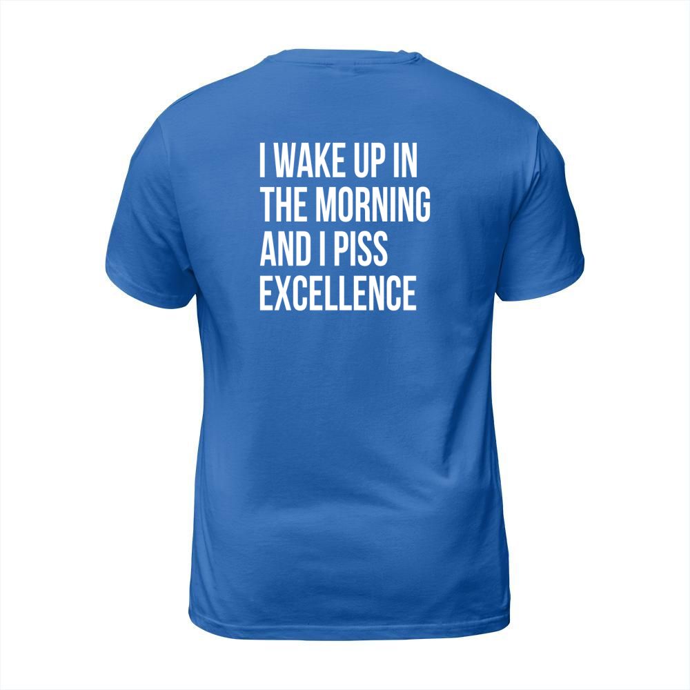 Shop i wake up in the morning and i pis excellence T-Shirt Unisex custom made just for you. Available on many styles, sizes, and colors.