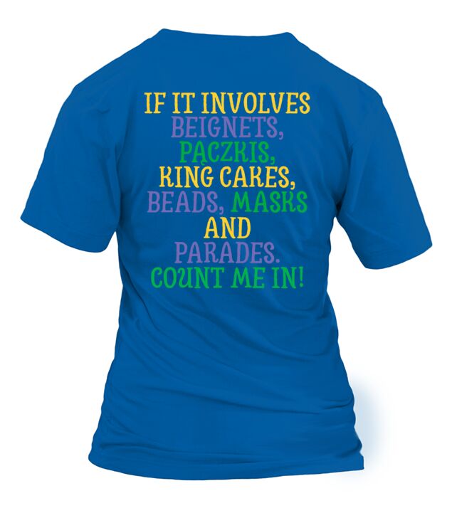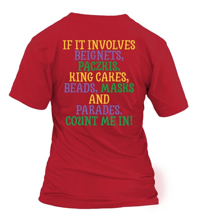 Shop If It Involves Mardi Gras Count Me In Funny Festiv T-Shirt Woman custom made just for you. Available on many styles, sizes, and colors.