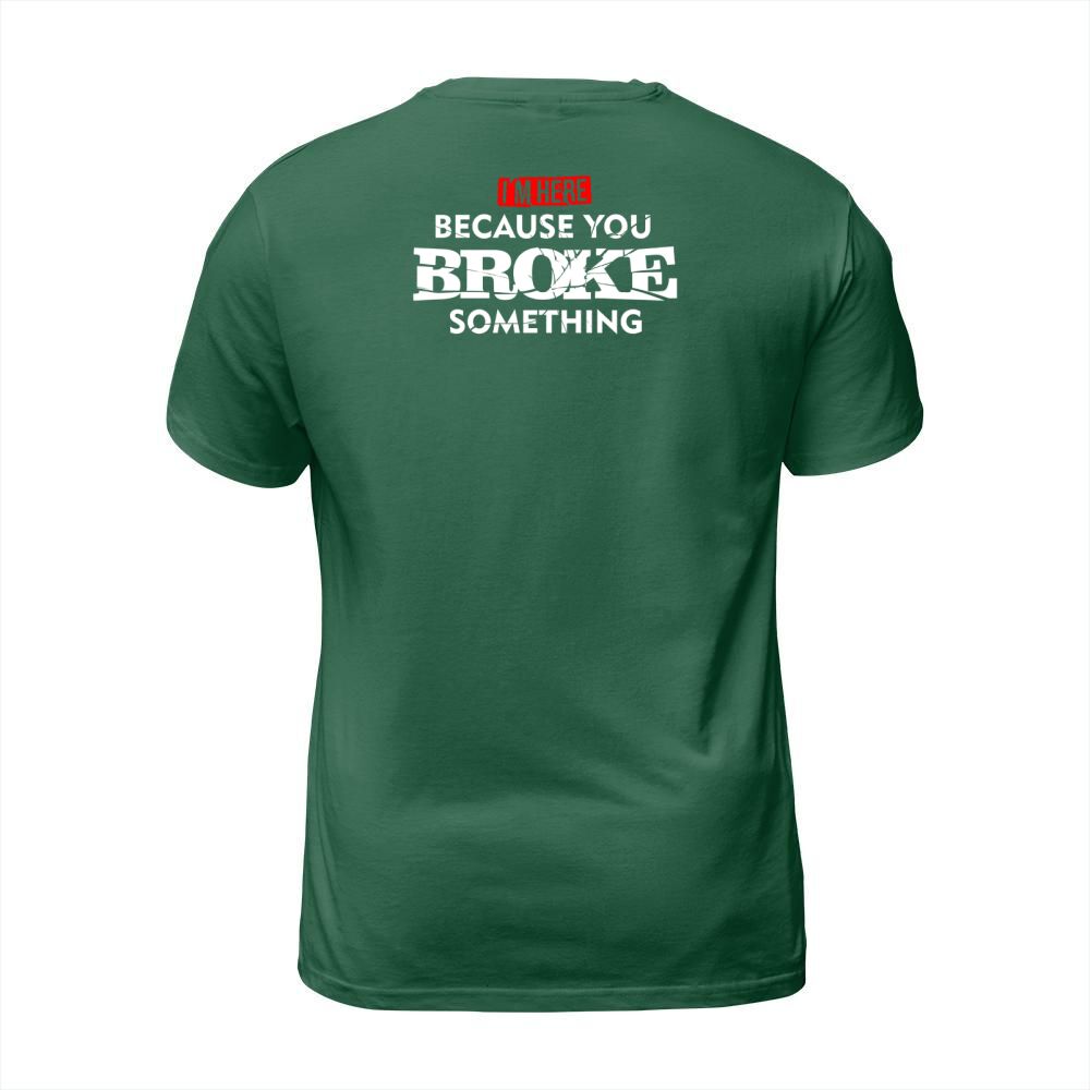 Shop Im Here Because You Broke Something T-Shirt Unisex custom made just for you. Available on many styles, sizes, and colors.