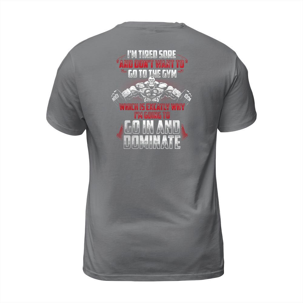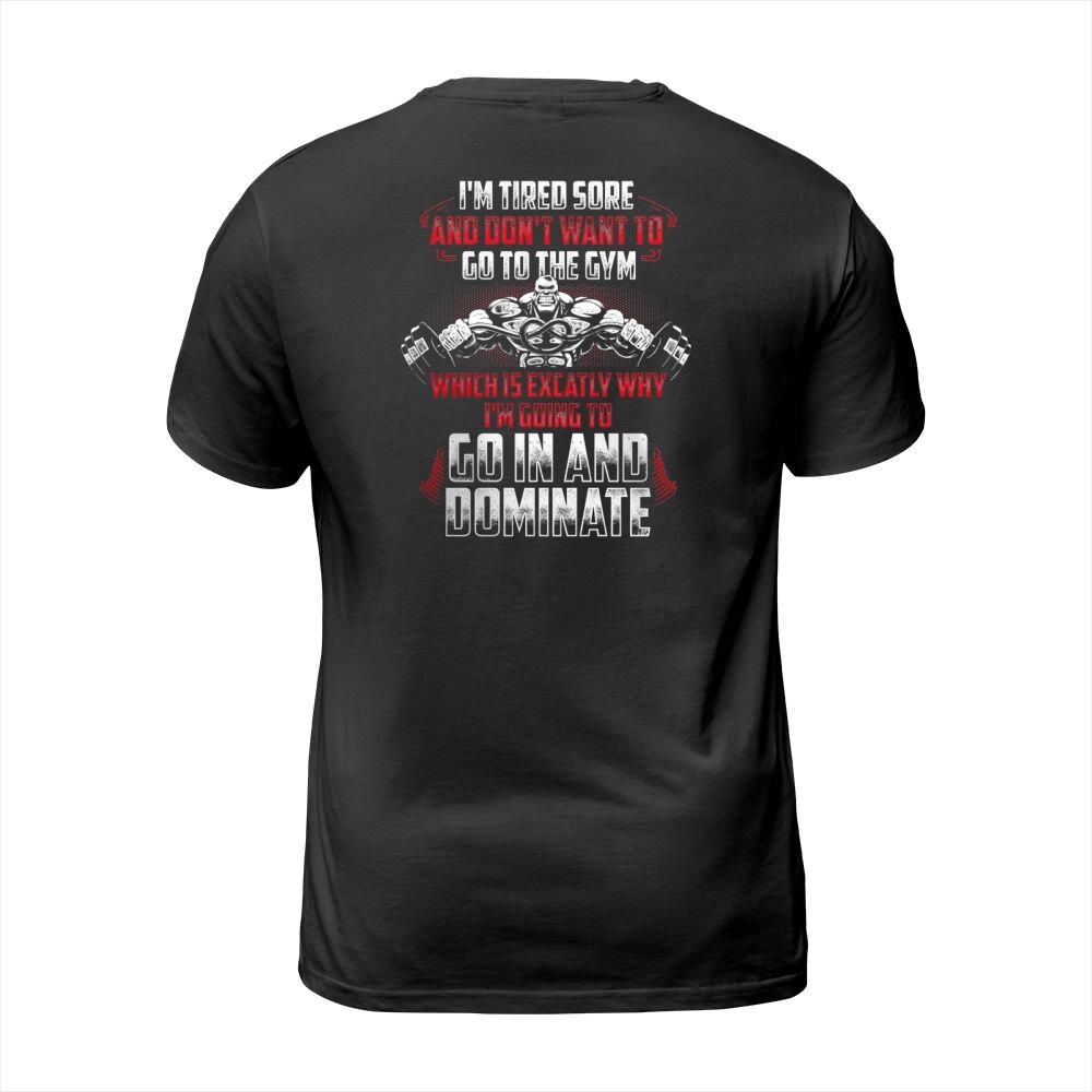 Shop Im Tired Sore And Dont Want To Go To The Gym Which Is Exactly Why Im Going To Go In And Dominate T-Shirt Unisex custom made just for you. Available on many styles, sizes, and colors.