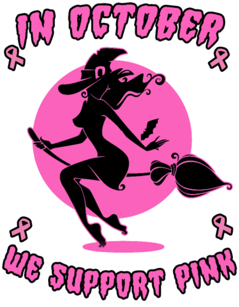 In October We Support Pink Halloween Witch Design