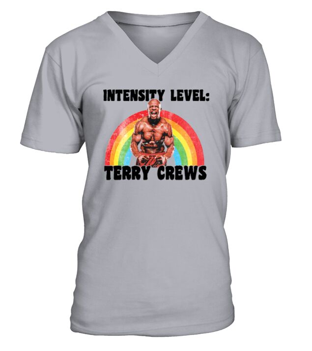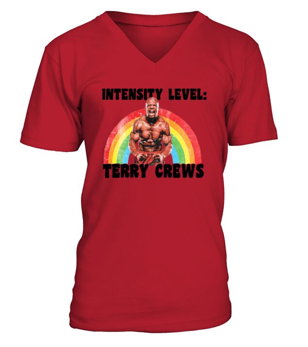 Shop Intensity level terry crews white shirt V-Neck T-shirt custom made just for you. Available on many styles, sizes, and colors.