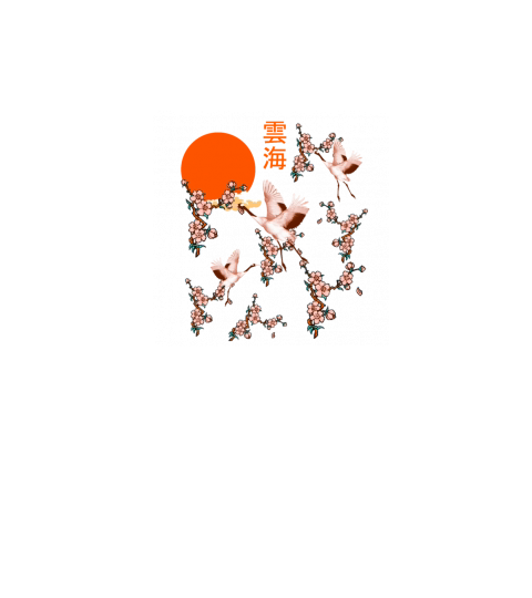 Japanese sea of clouds with a swan and sun