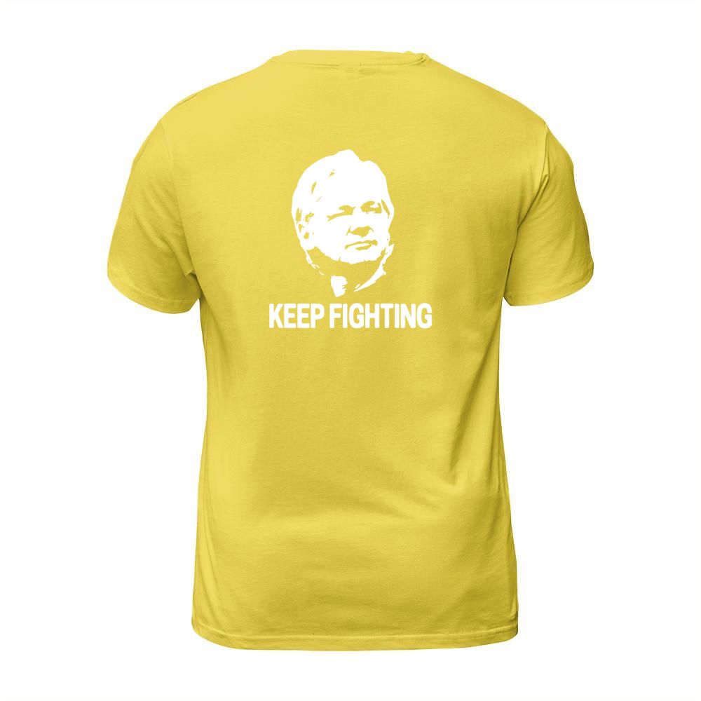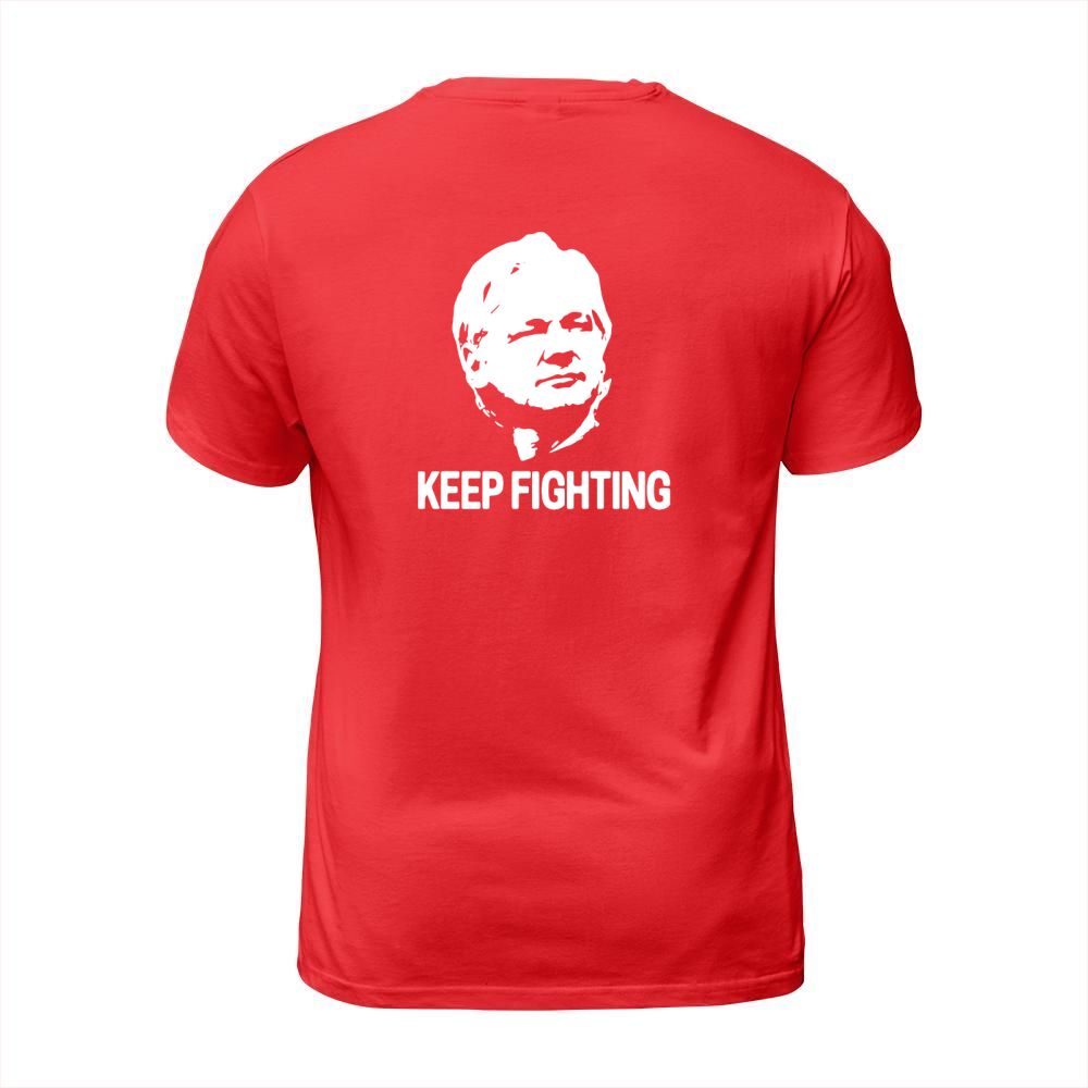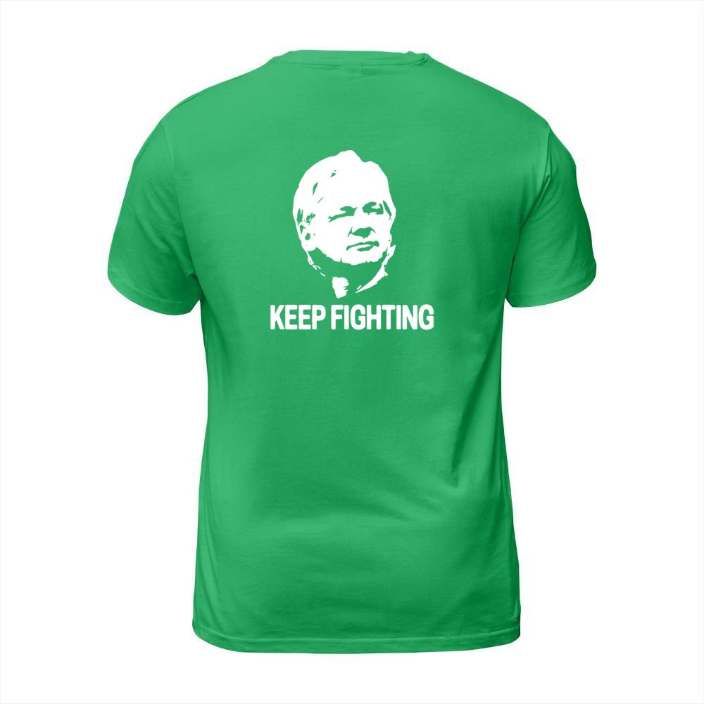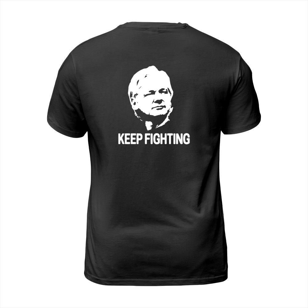 Shop Julian Assange Keep Fighting T-Shirt Unisex custom made just for you. Available on many styles, sizes, and colors.
