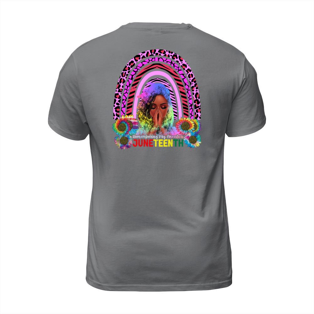 design reads: juneteenth t-shirt unisex
