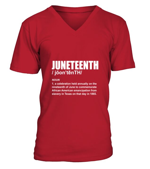 Shop Juneteenth Definition V-Neck T-shirt custom made just for you. Available on many styles, sizes, and colors.