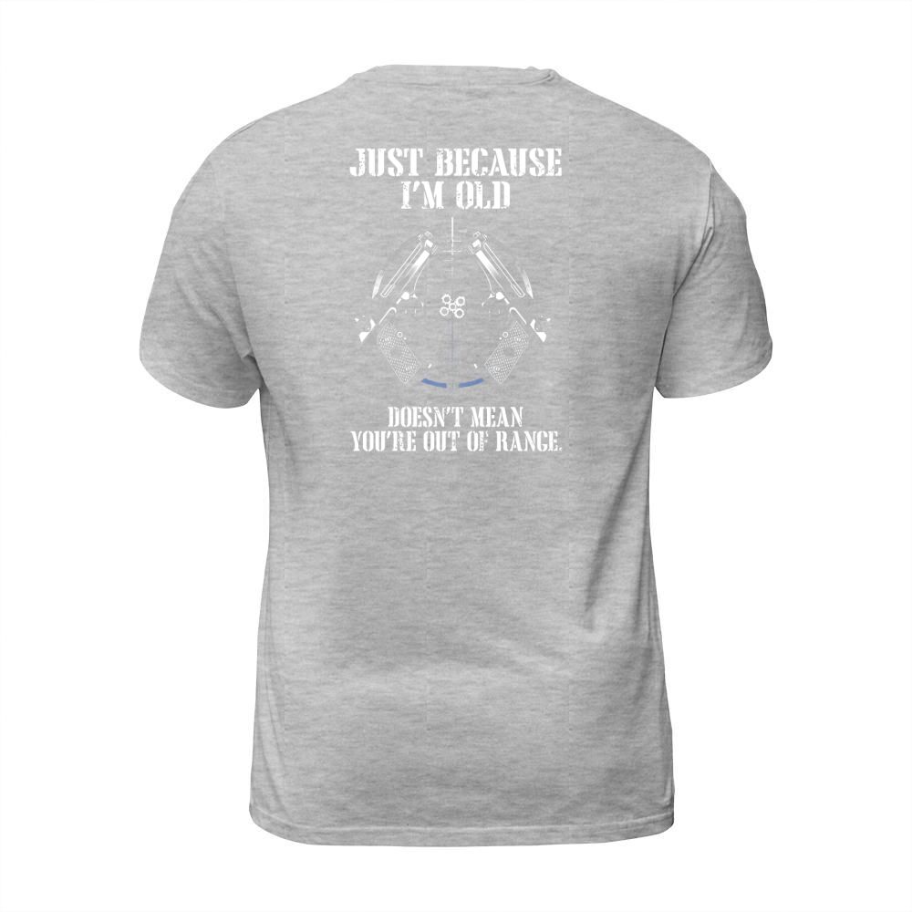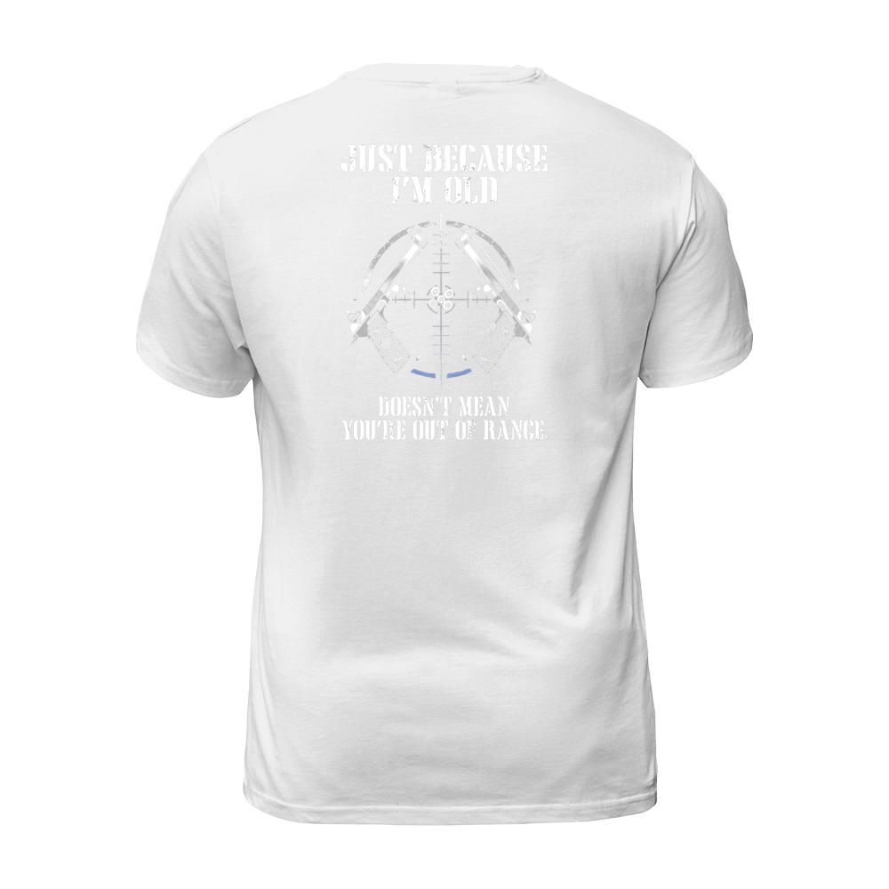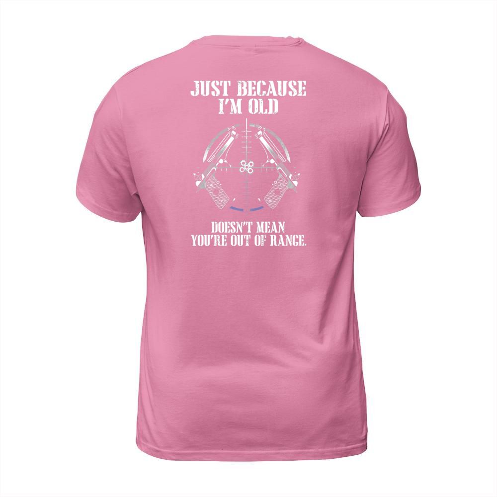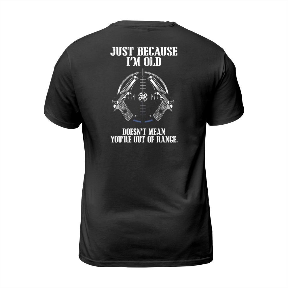 Shop Just Because Im Old Doesnt Mean Youre Out Of Range Shirt T-Shirt Unisex custom made just for you. Available on many styles, sizes, and colors.
